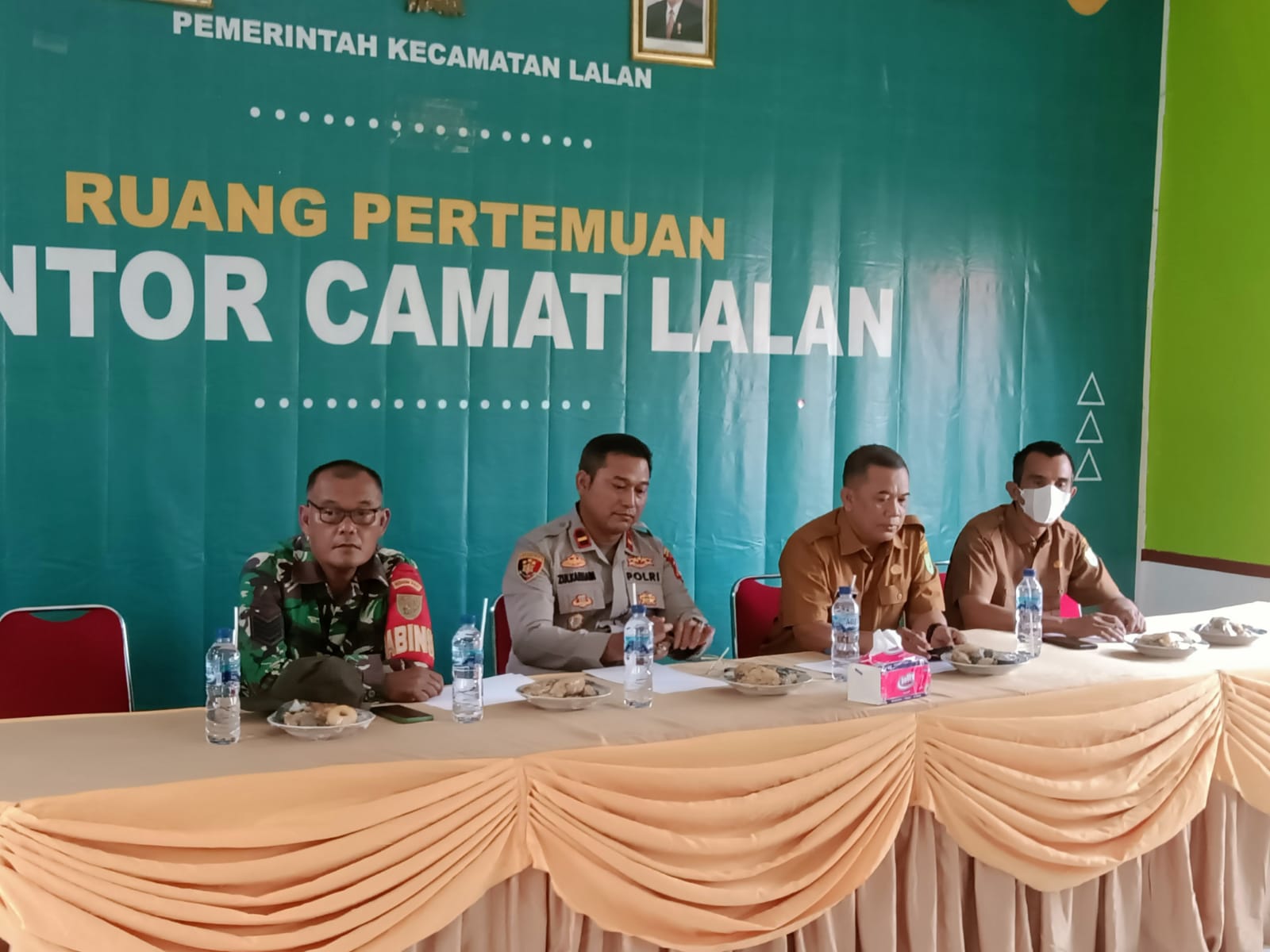 Dalam sambutannya, Camat Lalan Jamian, S.Pd., M.Si mengajak kepada seluruh Kades Kecamatan Lalan untuk bekerjasama dengan pihak Kepolisian dan pemuda Karang Taruna agar tidak bosan-bosan menyampaikan kepada warganya untuk tidak melakukan pembakaran ketika membuka atau membersihkan lahan dan kebun.