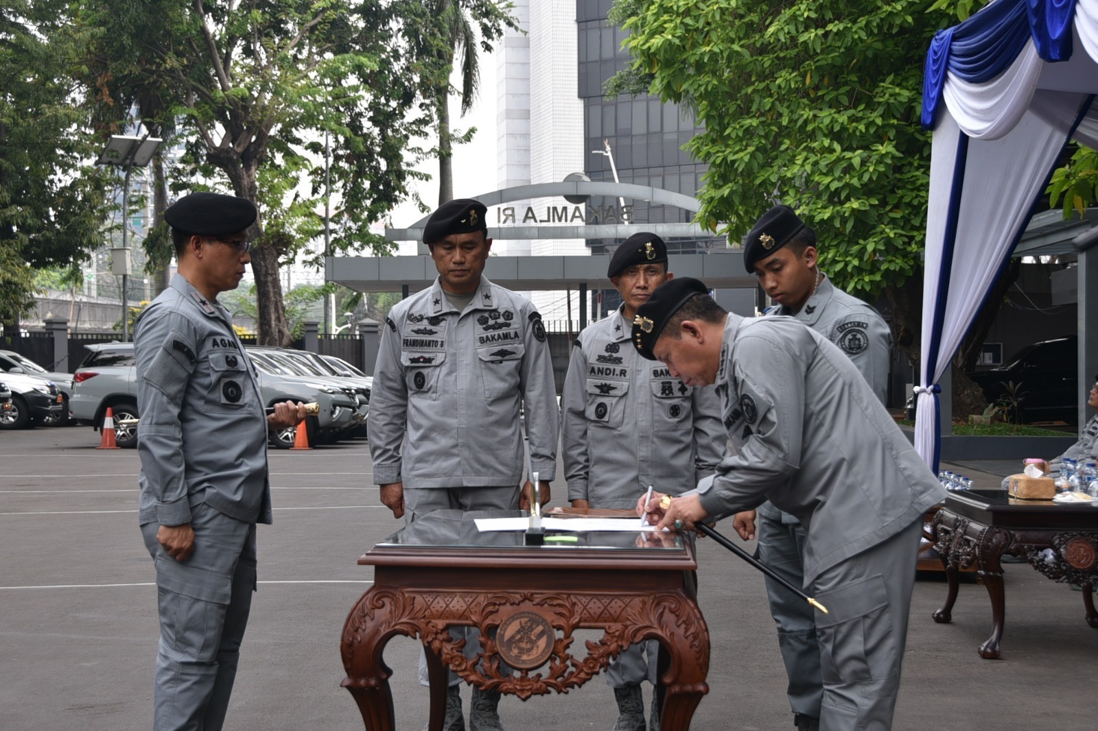 Rangkaian Upacara Pelantikan terdiri dari penandatanganan berita acara Serah Terima Jabatan di hadapan para saksi serta Kepala Bakamla RI. Hadirnya Kepala Zona Bakamla Timur yang baru tentu saja menjadi penguatan di Bakamla RI.