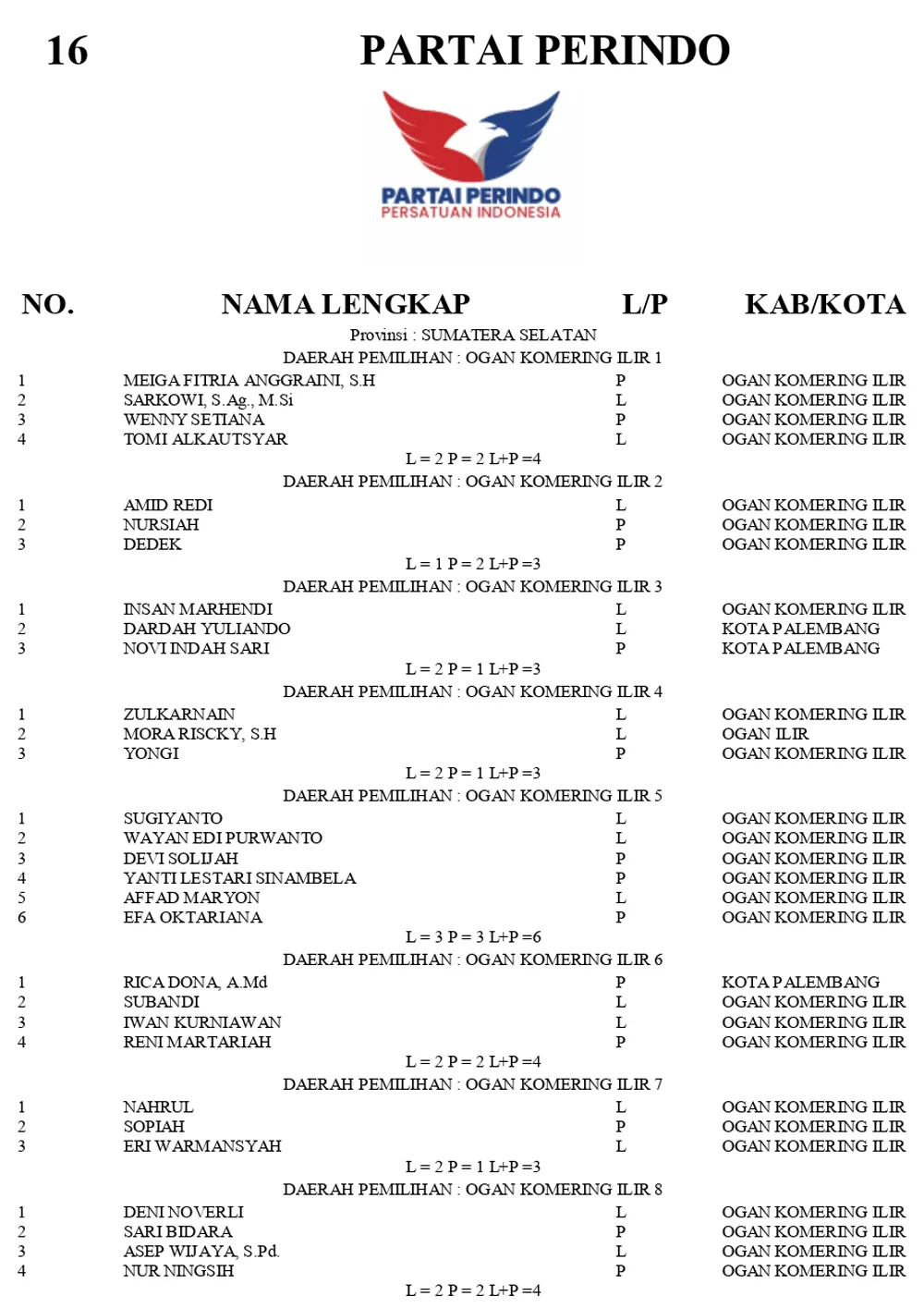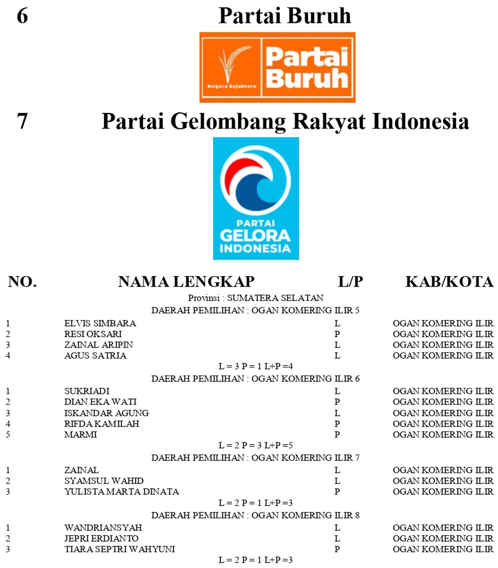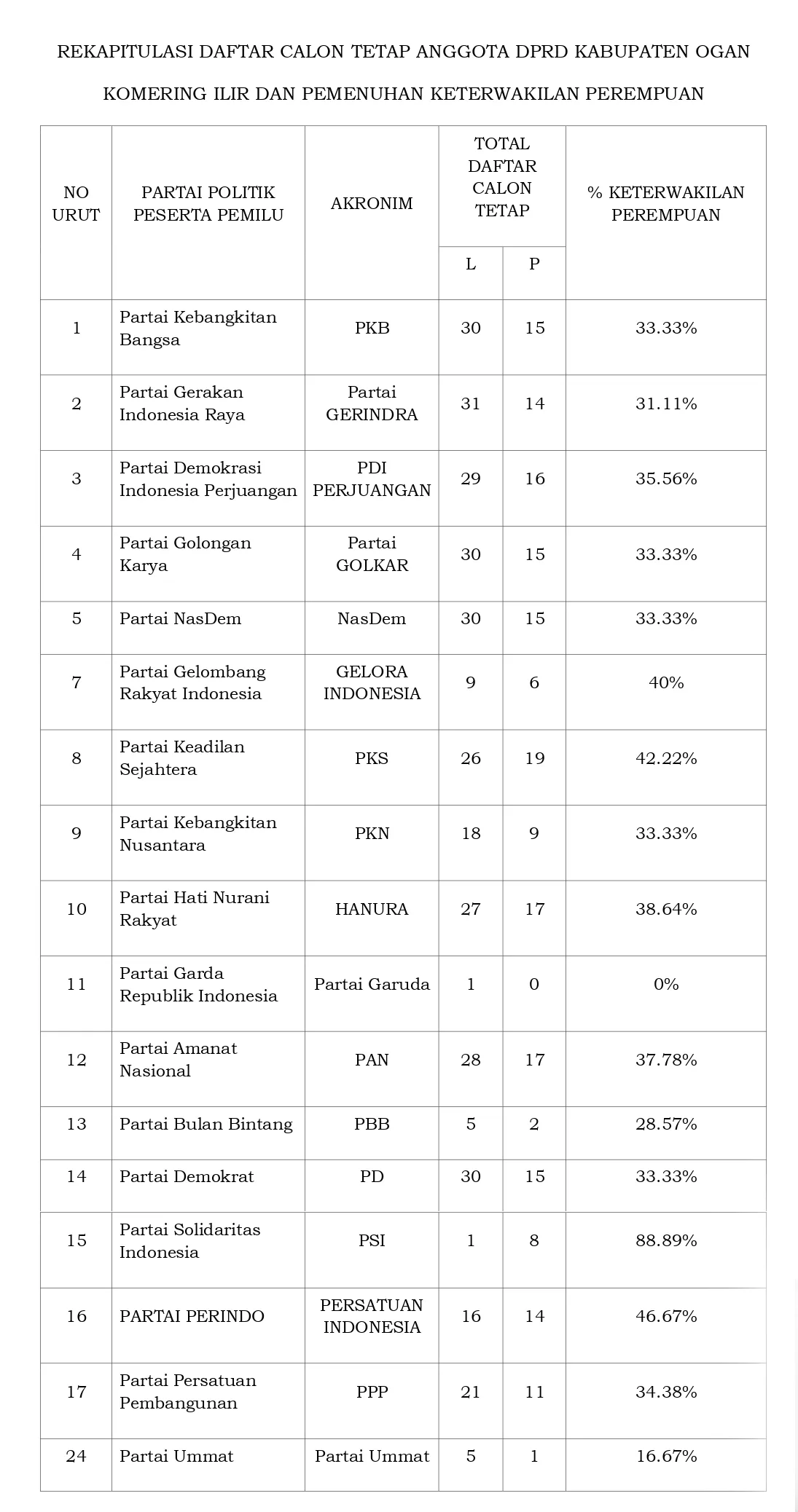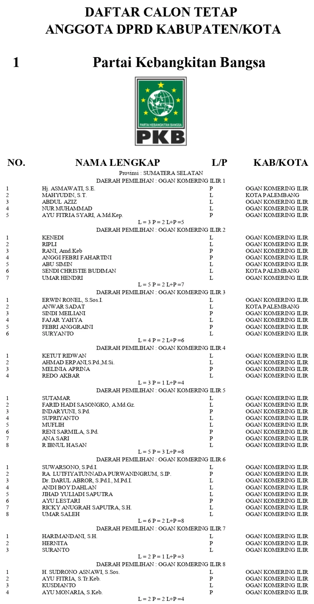 KRSUMSEL.COM, OKI – Komisi Pemilihan Umum (KPU) OKI mengumumkan Daftar Calon Tetap (DCT) untuk Calon Legislatif (Caleg) dari delapan Daerah Pilih (Dapil) di Kabupaten OKI, Sabtu (4/11).