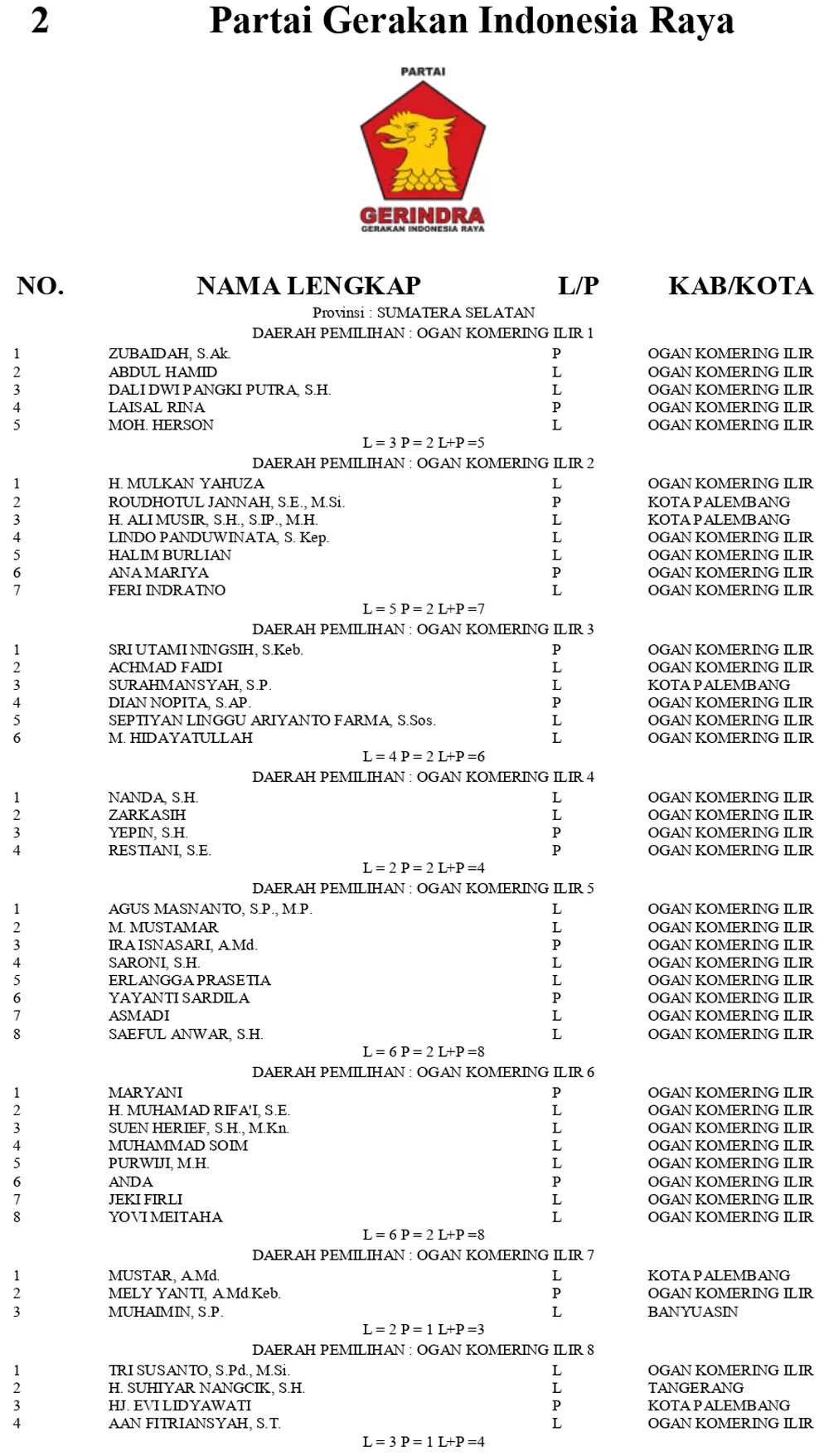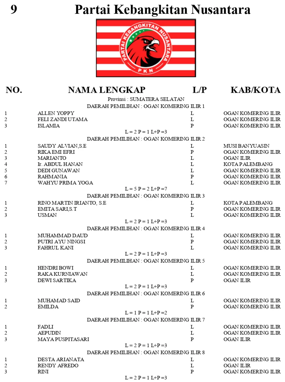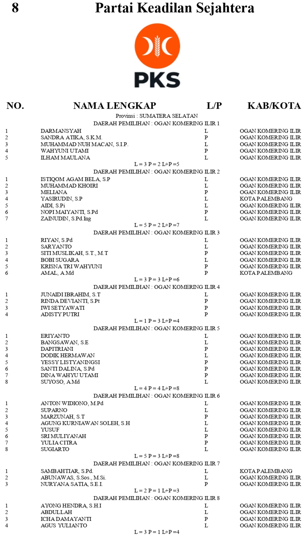 KRSUMSEL.COM, OKI – Komisi Pemilihan Umum (KPU) OKI mengumumkan Daftar Calon Tetap (DCT) untuk Calon Legislatif (Caleg) dari delapan Daerah Pilih (Dapil) di Kabupaten OKI, Sabtu (4/11).