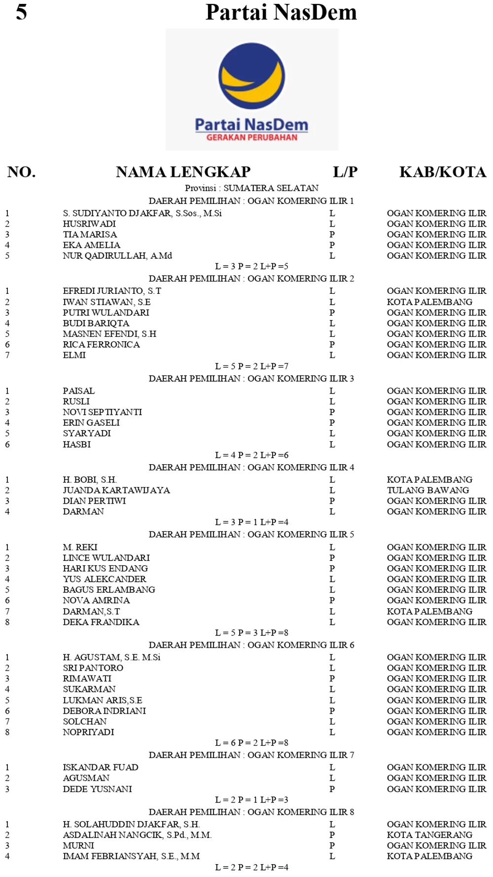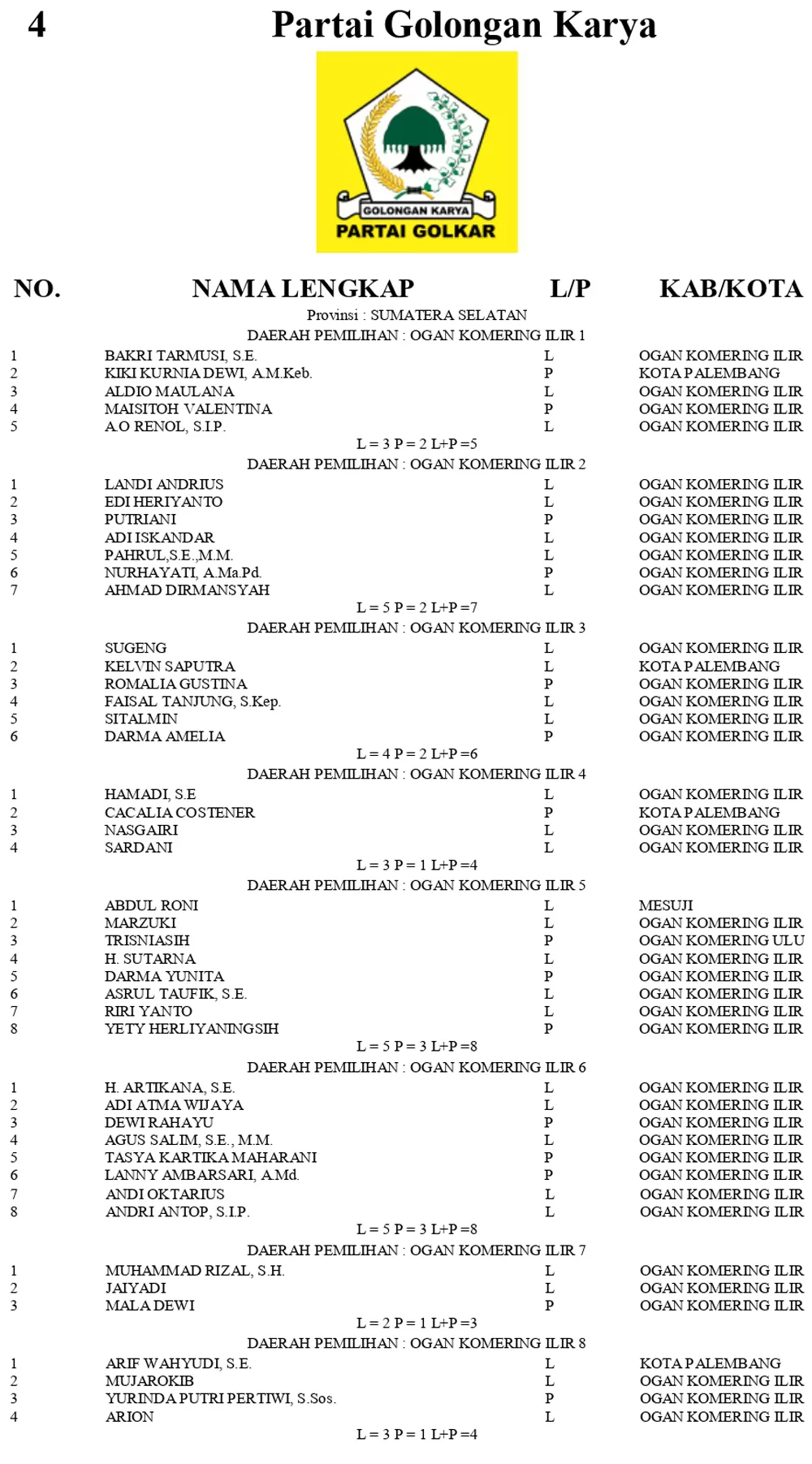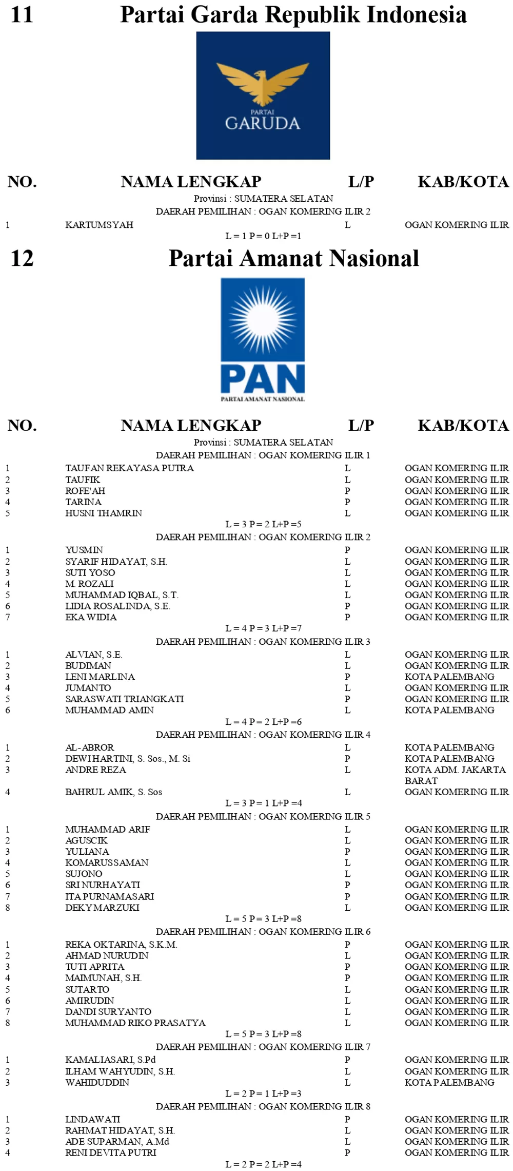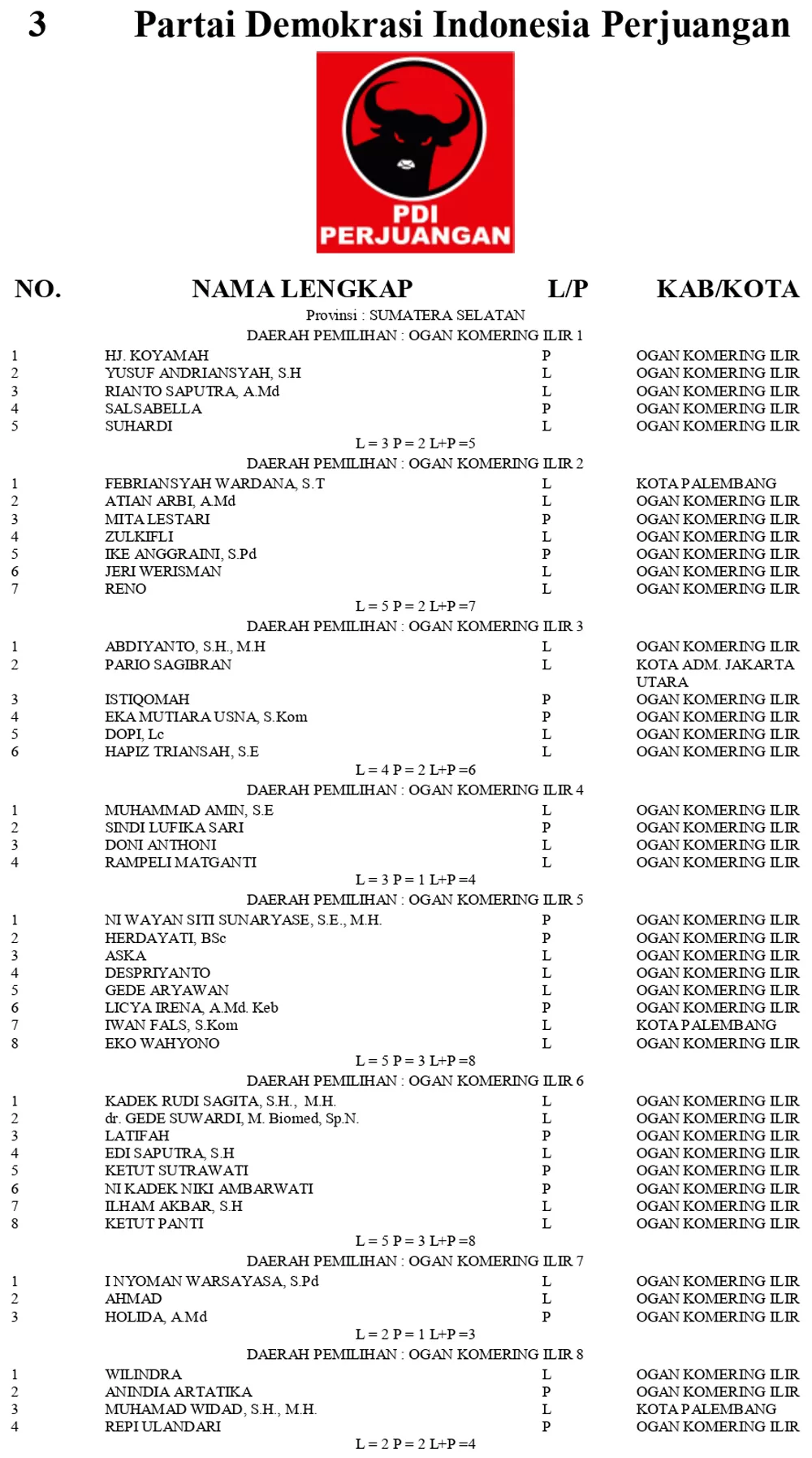 KRSUMSEL.COM, OKI – Komisi Pemilihan Umum (KPU) OKI mengumumkan Daftar Calon Tetap (DCT) untuk Calon Legislatif (Caleg) dari delapan Daerah Pilih (Dapil) di Kabupaten OKI, Sabtu (4/11).