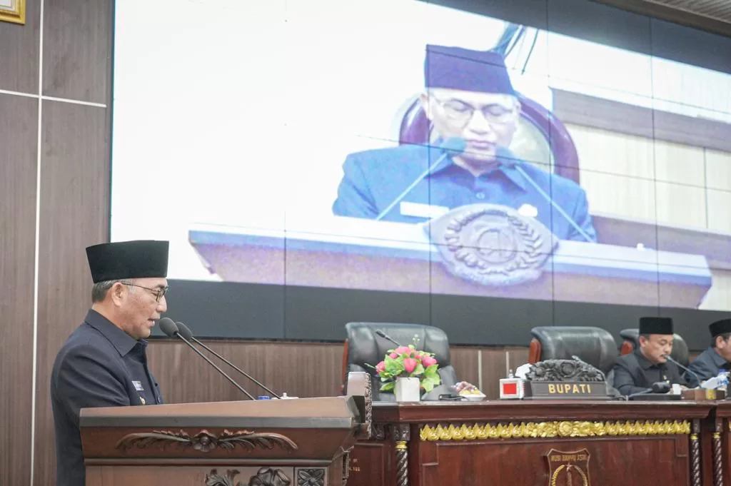 Muba, KRSUMSEL.COM – Pj Bupati Musi Banyuasin (Muba) H Apriyadi Mahmud menyampaikan penjelasan Dua Rancangan Peraturan Daerah (Raperda) inisiatif Pemkab Muba pada Rapat Paripurna Masa Persidangan I Rapat ke-27 di Ruang Rapat Paripurna DPRD Muba, Senin (6/11).