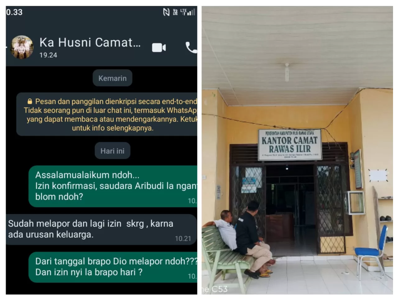 Kemudian dikonfirmasi kembali sekira pukul 20:34 WIB, dari tanggal berapa AB melapor dan sudah berapa lama izin tidak masuk kerja, Camat tidak ada lagi merespon dan chat konfirmasipun cuma dilihat saja.