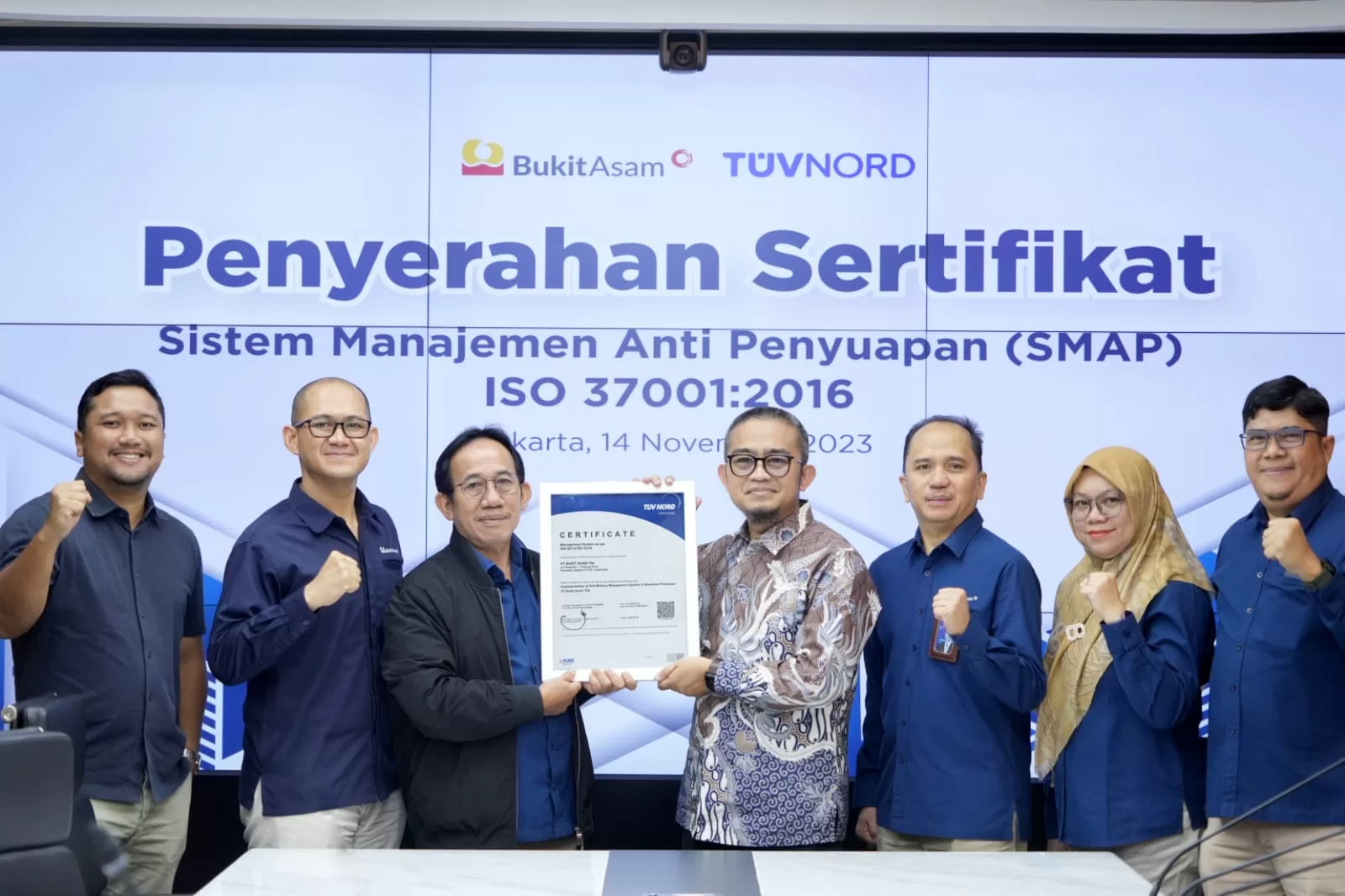 Muaraenim, KRSUMSEL – PT Bukit Asam Tbk (PTBA), anggota Grup MIND ID, berhasil mempertahankan Sertifikasi Sistem Manajemen Anti Penyuapan (SMAP) ISO 37001:2016.