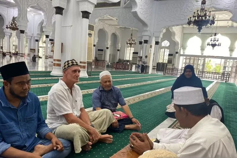 Krsumsel.com – Seorang turis asal Australia Johnny Harry Preston (65) resmi memeluk agama Islam usai mengucapkan dua kalimat syahadat di Masjid Raya Baiturrahman karena terinspirasi setelah membaca buku tentang kisah Rasulullah Shalallaahu Alaihi Wassalaam (SAW).