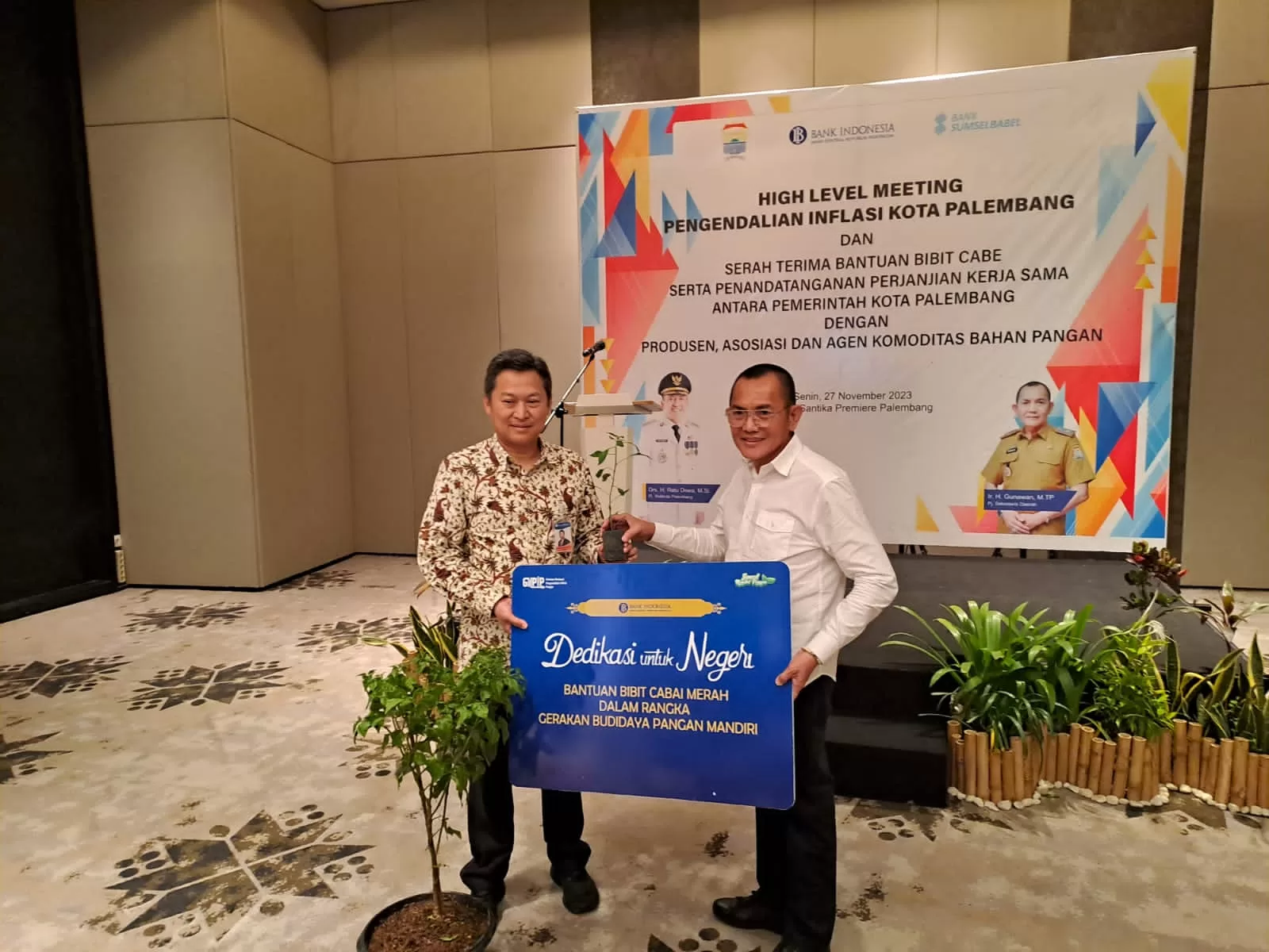 Tim Pengendalian Inflasi Daerah (TPID) Kota Palembang melaksanakan High Level Meeting (HLM) serta serahkan bantuan bibit Cabai.