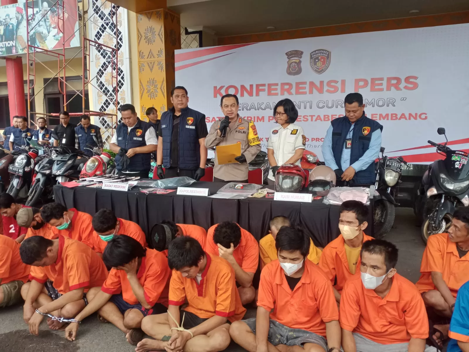 “Kami merilis hasil Operasi Gerakan Anti Curanmor yang sudah kita laksanakan selama 21 hari, melibatkan jajaran reserse kriminal, baik di kesatuan Polrestabes Palembang dan jajaran polsek se Kota Palembang,” kata Harryo kepada awak media.