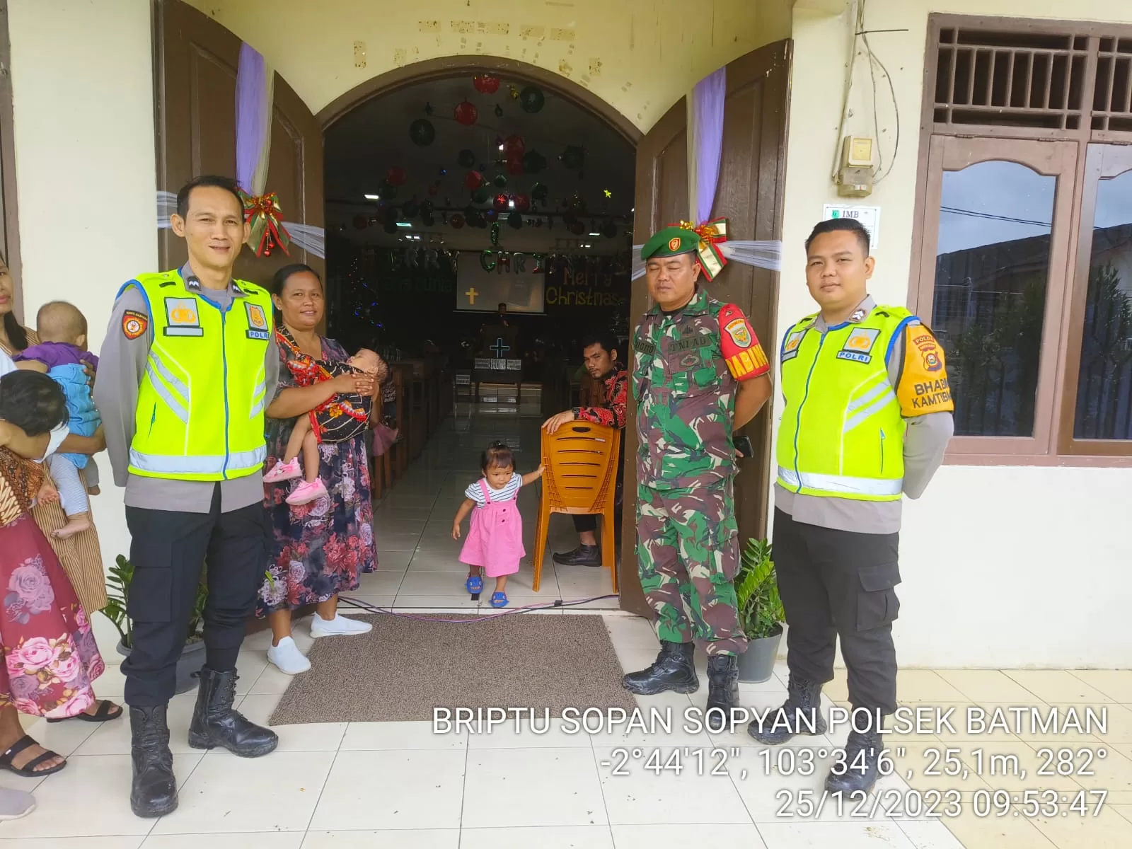 KRSUMSEL.COM, Muba – Puluhan personil Polres Muba dan Polsek jajaran diterjunkan guna mengamankan perayaan Natal di tiap gereja di Kabupaten Muba.