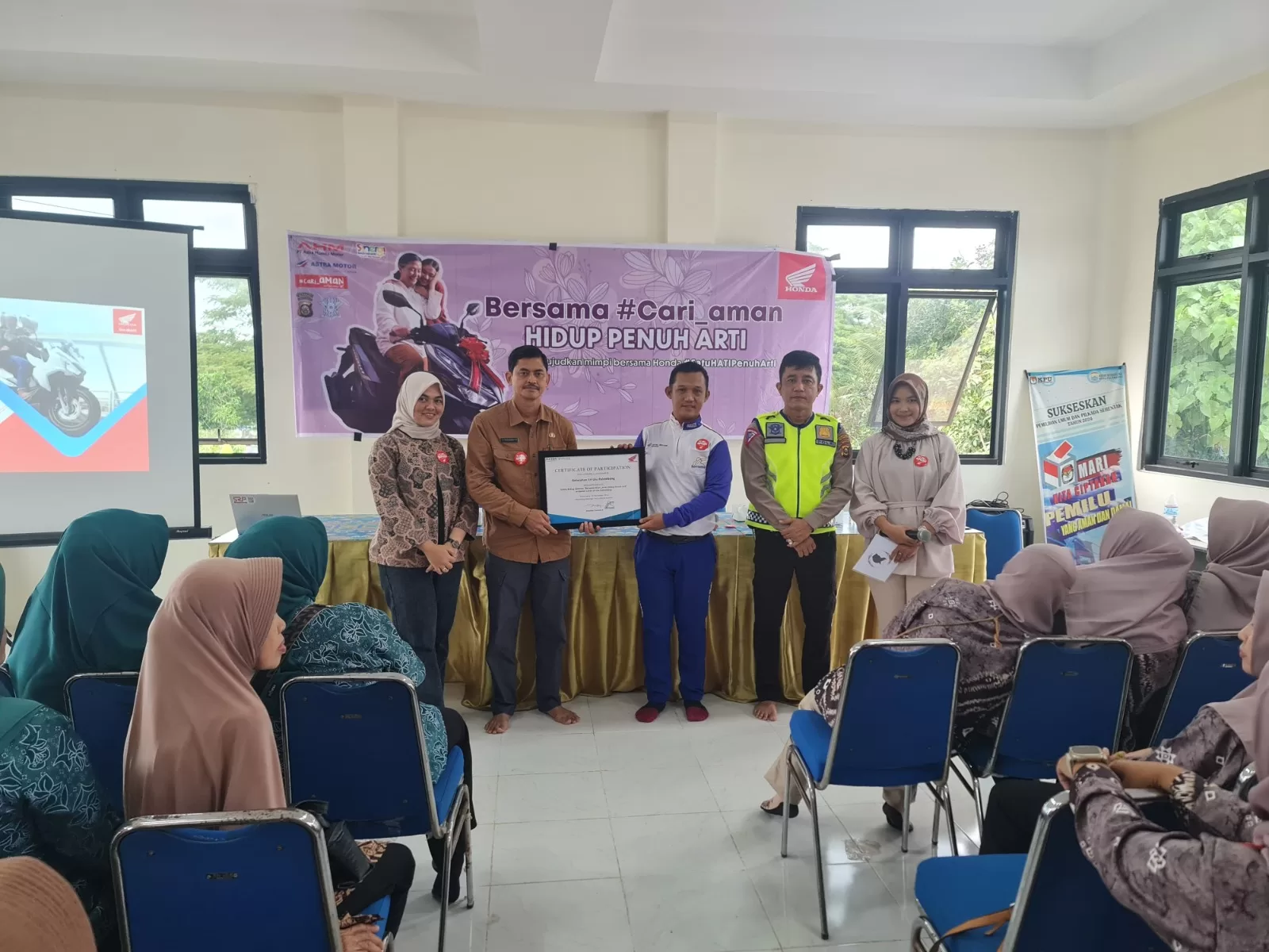 Sebagai bentuk kepedulian Astra Motor Sumsel untuk para ibu yang tergabung dalam kegiatan ini, Astra Motor membagikan total 30 helm Honda #Cari_Aman untuk seluruh peserta.
