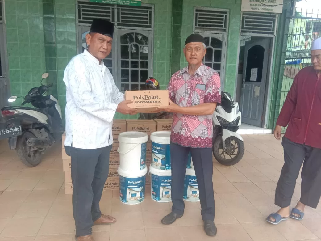 KRSUMSEL.COM, Palembang – Guna mempercantik tempat ibadah bagi umat Islam sekaligus sebagai destinasi wisata religi, pihak Kepolisian Polrestabes Palembang memberikan bantuan cat ke Masjid Ki Marogan.