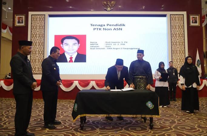 “Kenaikan gaji ini sebagai bentuk apresiasi kepada PTK Non-ASN yang selama ini telah bersusah payah mendidik anak-anak kita, generasi penerus bangsa,”kata Gubernur Kepri, Ansar Ahmad saat menyaksikan penandatanganan Surat Perjanjian Kerja (SPK) PTK Non ASN Tahun 2024 di Aula Wan Seri Beni Pulau Dompak Tanjungpinang, Jumat (5/1).