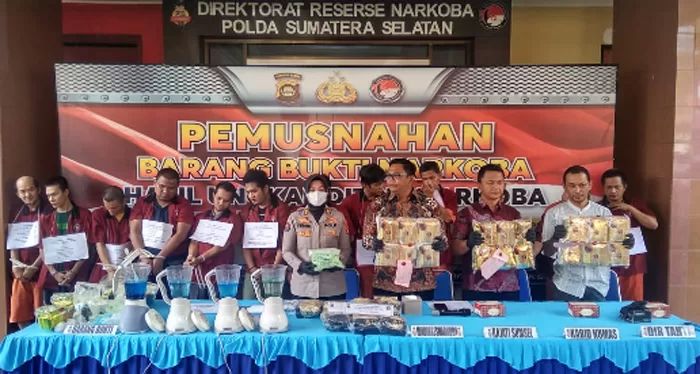 Narkoba yang dimusnahkan yakni sabu sebanyak 38,1 Kg dan ribuan pil ekstasi yang rencananya akan diedarkan malam pergantian Tahun Baru 2024 lalu di sejumlah wilayah Sumsel.