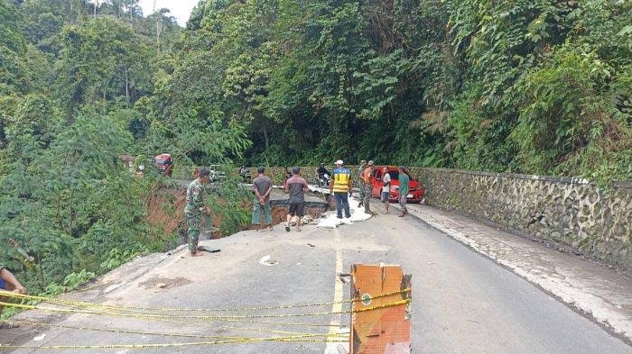 Larangan melintas tersebut dilakukan sebab, kondisi jalan yang longsor tersebut sangat mengkhawatirkan bahkan hanya menyisakan sedikit badan jalan.