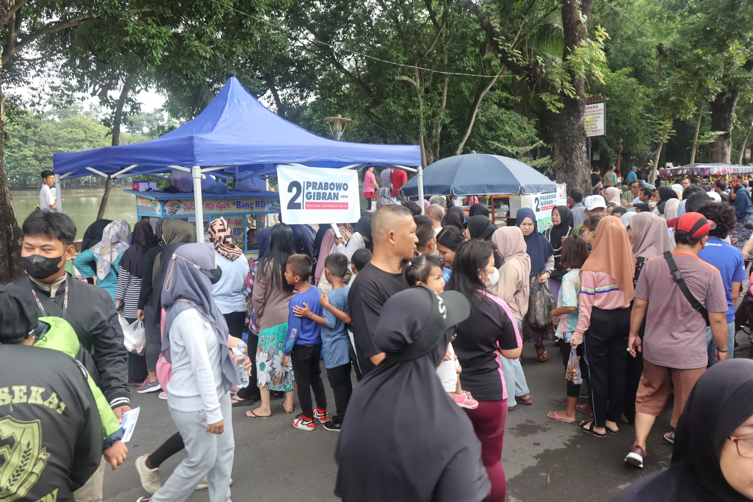 KRSUMSEL.COM, Palembang – Dalam rangka sosialisasi program makan siang gratis dari calon presiden dan calon wakil presiden (capres dan cawapres) Prabowo Gibran, Tim Kampanye Daerah (TKD) Sumsel melaksanakan kegiatan memborong dagangan Pedagang Kaki Lima (PKL) di Kambang Iwak.