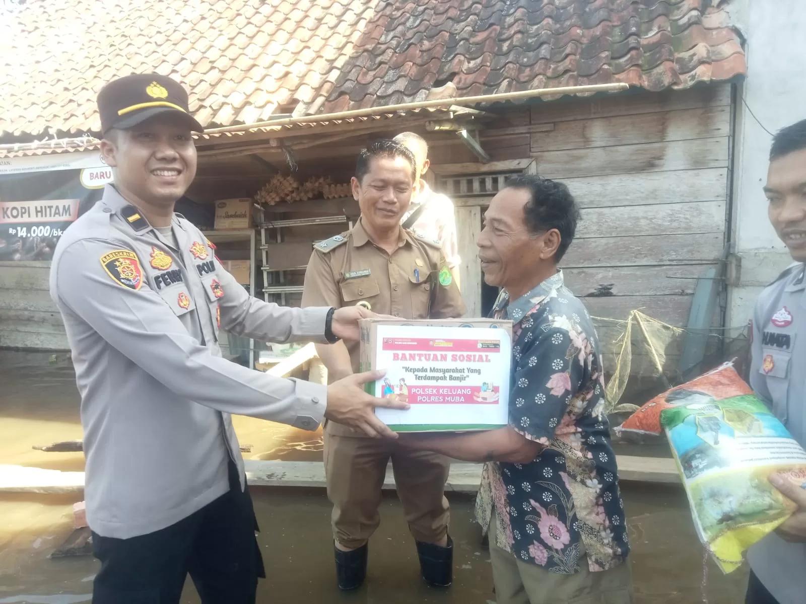 KRSUMSEL.COM, Muba – Polsek Keluang Resort Musi Banyuasin (Muba) menyalurkan bantuan sosial (Bansos) ke warga terdampak banjir di Desa Lumpatan Kecamatan Sekayu, Kabupaten Muba, Sumsel.