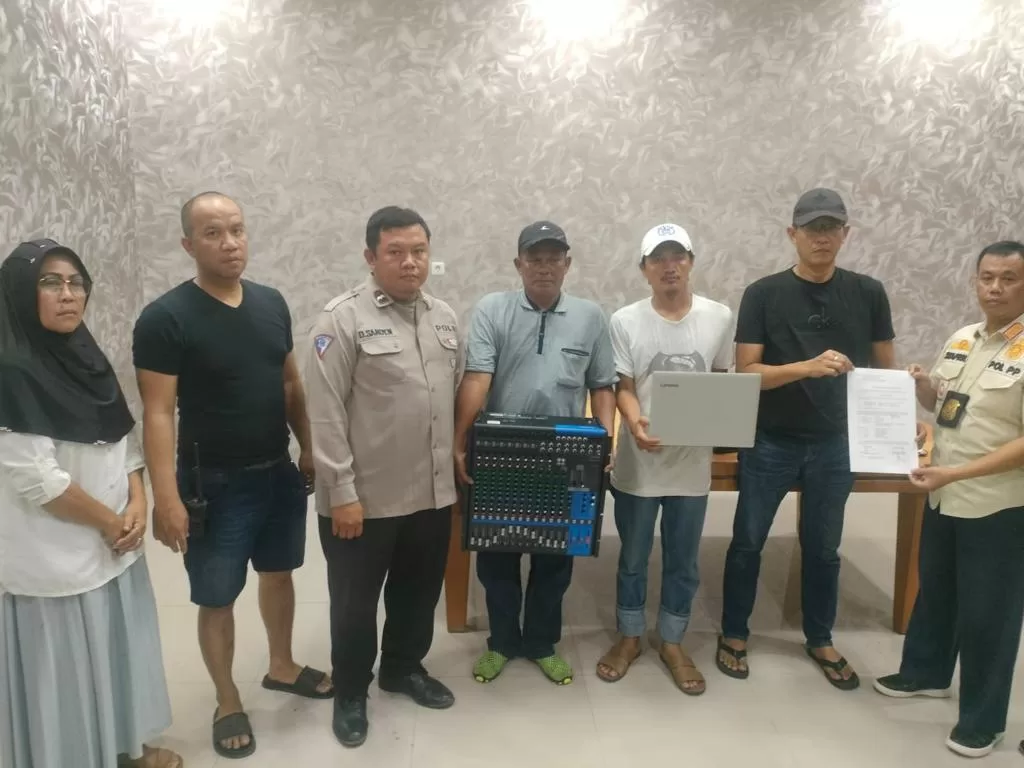 Alex menjelaskan, selain membubarkan acara, pihaknya juga mengamankan sejumlah alat music yang akan dijadikan barang bukti. Yakni, tiga handphone, satu laptop, satu headset dan satu mixer.