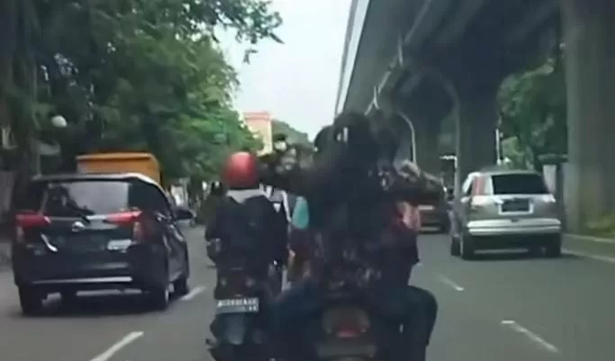 Dalam video yang diposting berdurasi 49 detik ini, terlihat pengendara motor ini melintas di Jalan Sudirman tepatnya depan Internasional Plaza (IP), berbonceng lima mengunakan motor matic, tiga dewasa dan dua anak-anak.
