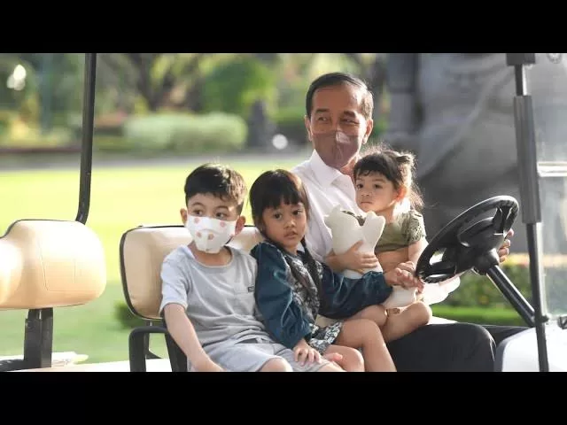 Jokowi mengenakan kaus dan celana hitam, tampak ikut masuk ke area tempat bermain, salah satunya area mandi bola saat mengasuh Jan Ethes dan La Lembah Manah. Selain mengajak Ethes dan Lembah Manah bermain di playground, Jokowi disebut membelikan sejumlah mainan kepada dua orang cucunya itu.