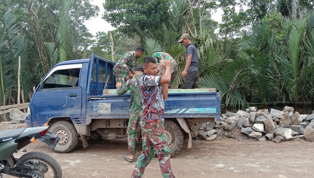 Diantaranya, mengerjakan pembuatan Tanggul Penahan Tanah (TPT) usai pembukaan akses jalan, tanpa lelah bersama masyarakat bergotong royong agar dapat selesai sesuai batas waktu yang ditentukan, Minggu (10/03).