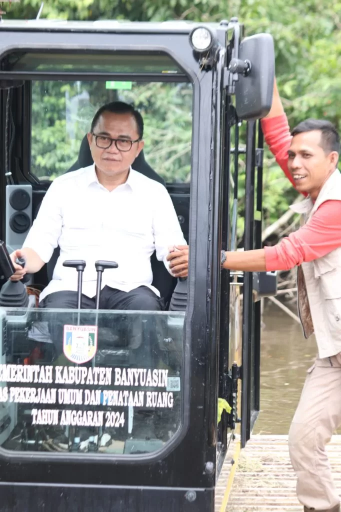 Didampingi oleh Sekretaris Daerah, Ir. Erwin Ibrahim, ST., MM., MBA, IPU., ASEAN. Eng, Plt. Kepala Dinas PUPR Banyuasin, Ir. Apriansyah, ST., MM, Kepala Dinas Perkimtan Banyuasin, Ir. H. M. Riyan Aditya Saputra, MT., ASEAN. Eng, Kepala DPMPTSP Banyuasin, Dr. Drs. H. Ali Sadikin, M. Si, Inspektur Banyuasin, ir. Zakirin, SP., MM.,CGCAE, dan Kepala Disperindag Kabupaten Banyuasin, Ir. Alpian. MM, melaunching normalisasi Sungai Gasing, Rabu (13/3).