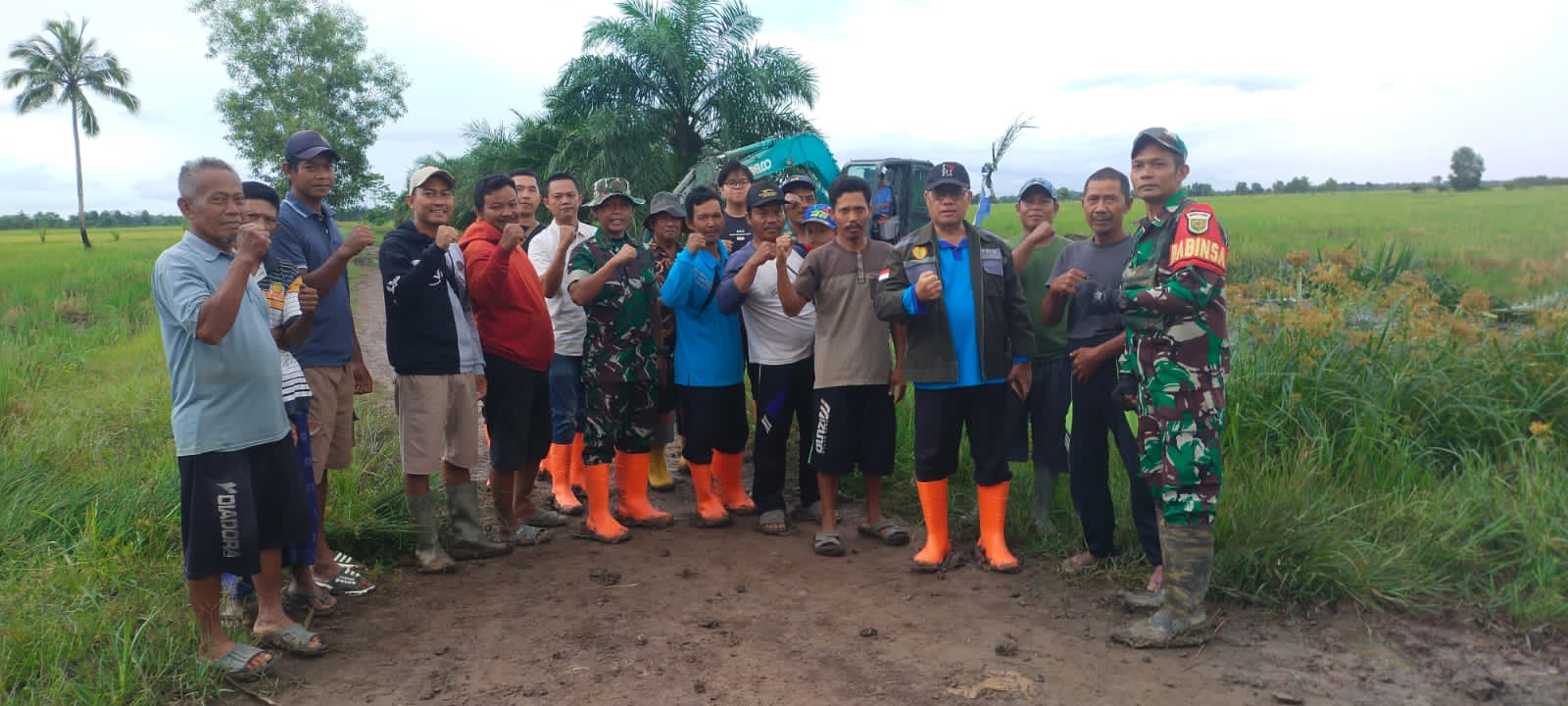 “Menggunakan alat berat berupa Exscavator untuk mempercepat proses optimasi lahan, dimana Babinsa Koramil air Sugihan dibantu Gapoktan desa bandar jaya dibantu masyarakat setempat bergotong royong sehingga proses pekerjaan dapat segera terselesaikan ”