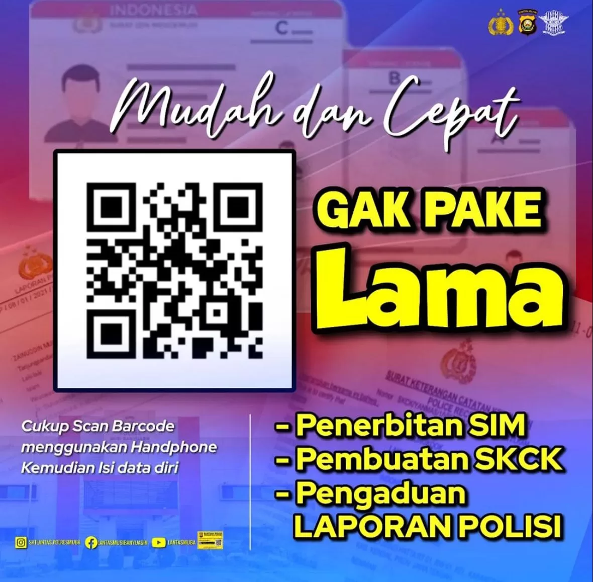 “Benar, sekarang Polres Muba berinovasi dengan mempermudah layanan SIM, SKCK dan SPKT. Masyarakat cukup melakukan scan barcode memakai handphone miliknya, ” ungkap Ricky, Sabtu (23/3).