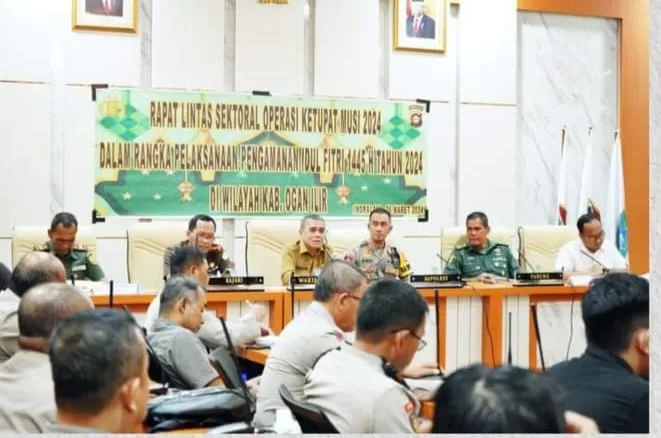 KRSUMSEL.COM, Ogan Ilir – Dalam rangka pengamanan Hari Raya Idul Fitri 1445H/ 2024M di wilayah Kabupaten Ogan Ilir, jajaran Forkopimda Ogan Ilir menggelar Rapat Koordinasi Lintas Sektoral Operasi Ketupat Musi 2024 di ruang rapat utama Bupati Ogan Ilir, Selasa (26/3).