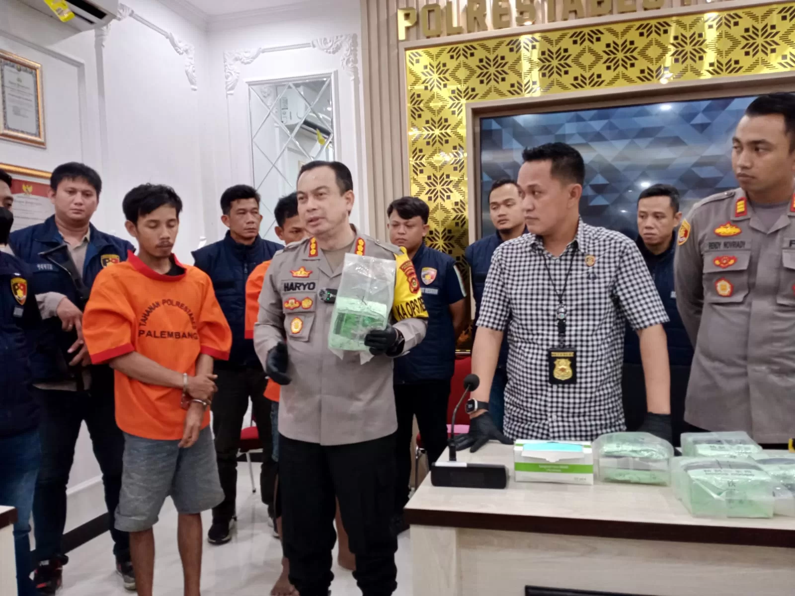 “Awalnya 60 kilogram, namun sudah terpecah dan sudah sempat didistribusikan, ada 15 kilogram di Sekolah Olahraga Jakabaring dan ada lima kilogram Taman Anggrek. Kita ketahui, ini jaringan terputus dan kami masih memburu dua pelaku, yang tidak lain penyuplai dari barang haram tersebut,” ungkapnya.