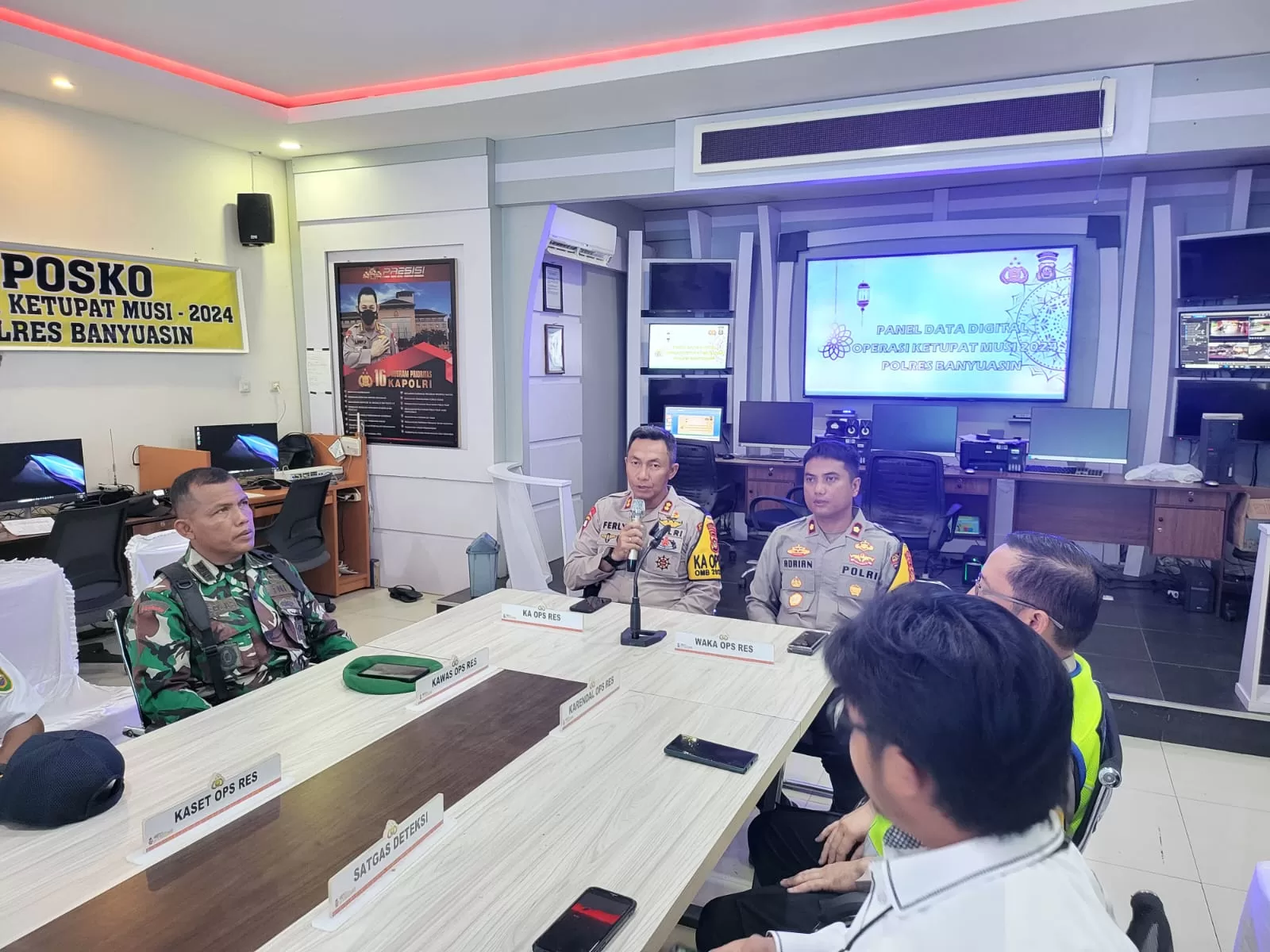 BANYUASIN, KRSumsel.com – Dalam rangka mempersiapkan Operasi Kepolisian pengamanan Idul Fitri 1445 H/2024, Polres Banyuasin Polda Sumsel Gelar Lat Pra Ops Ketupat 2024 di Gedung Integrated Command Center Polres Banyuasin,Rabu (3/4/24).