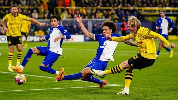 Dortmund berhasil memimpin 2-0 di babak pertama lewat Julian Brandt dan Ian Maatsen. Gol-gol itu membuat Dortmund memimpin agregat 3-2.