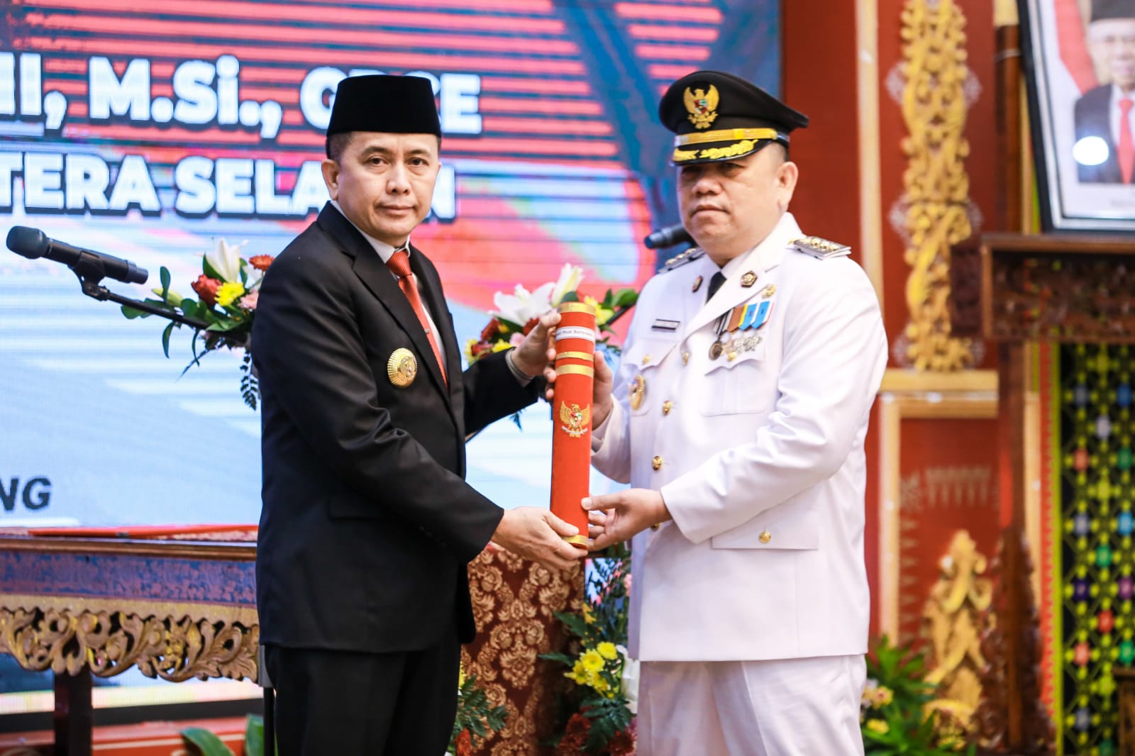 KRSUMSEL.COM, Muba – Kepala Biro Umum dan Perlengkapan Pemprov Sumsel Sandi Fahlevi SP MSi resmi dilantik menjadi Penjabat (Pj) Bupati Muba oleh Pj Gubernur Sumsel Dr Agus Fatoni MSi, Senin (22/4) di Ruang Joglo Griya Agung Palembang.