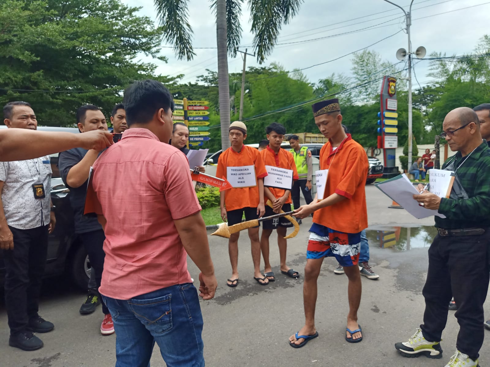 Rekontruksi yang digelar dengan 10 adegan itu, tiga tersangka yakni Rian, Fadil dan Dir memerankan langsung sebagai tersangka. Sedangkan korban dan saksi diperankan oleh petugas kepolisian.