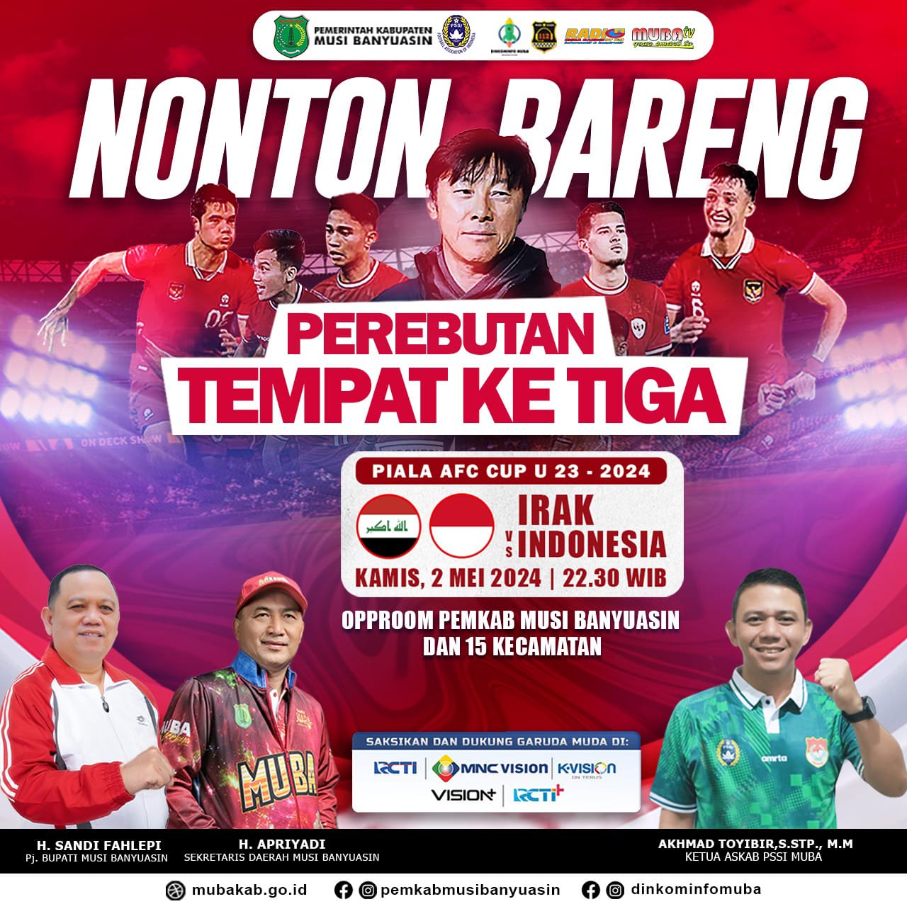 KRSUMSEL.COM, Muba – Timnas Indonesia bakal memperebutkan Tempat Ketiga Piala AFC CUP U-23. Diketahui Indonesia akan berlaga bersama dengan Irak pada, Kamis malam (2/5/2025).