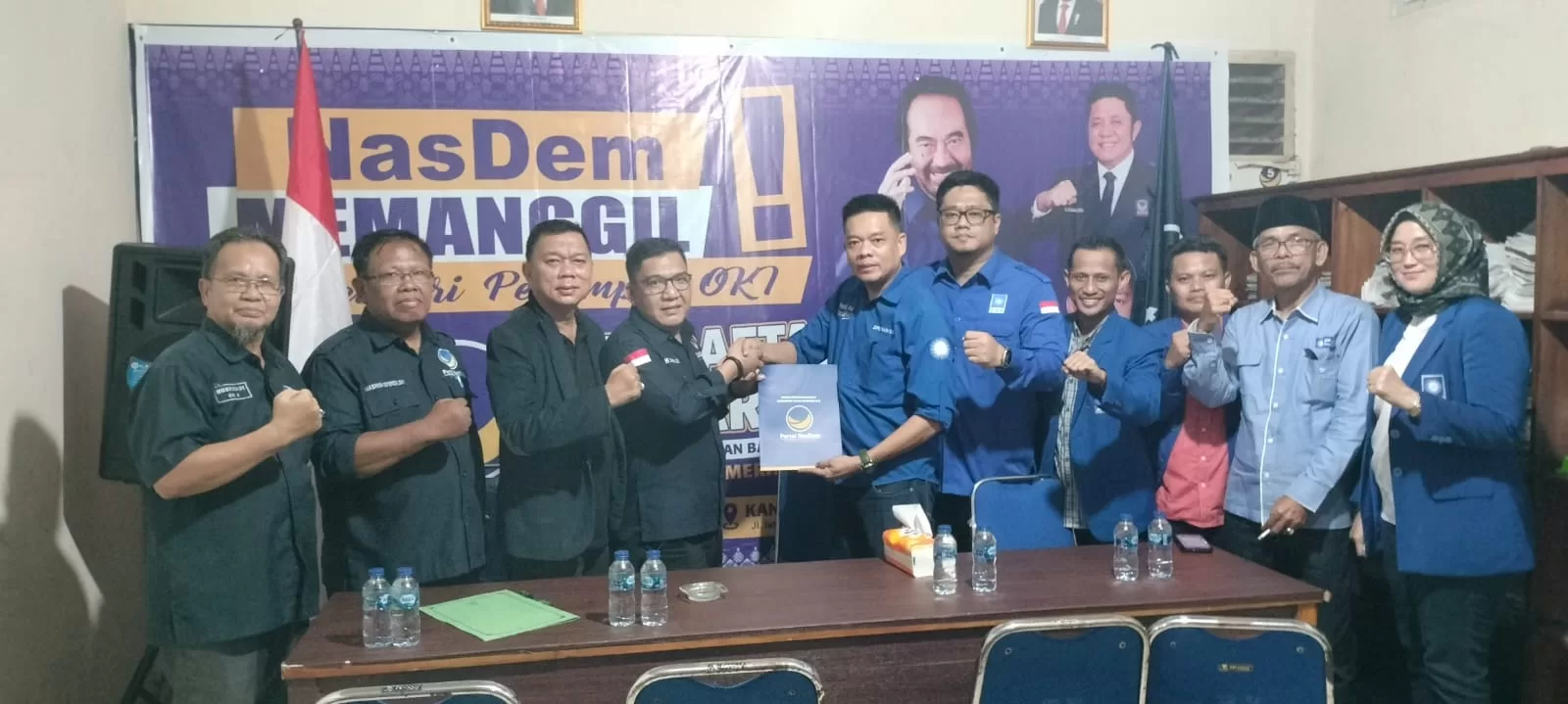 KRSUMSEL.COM, OKI – Meski diwakilkan, Kader terbaik dari Partai PAN, M Alki Ardhiansyah Iskandar mengambil formulir bakal calon bupati di DPD Partai Nasdem OKI.