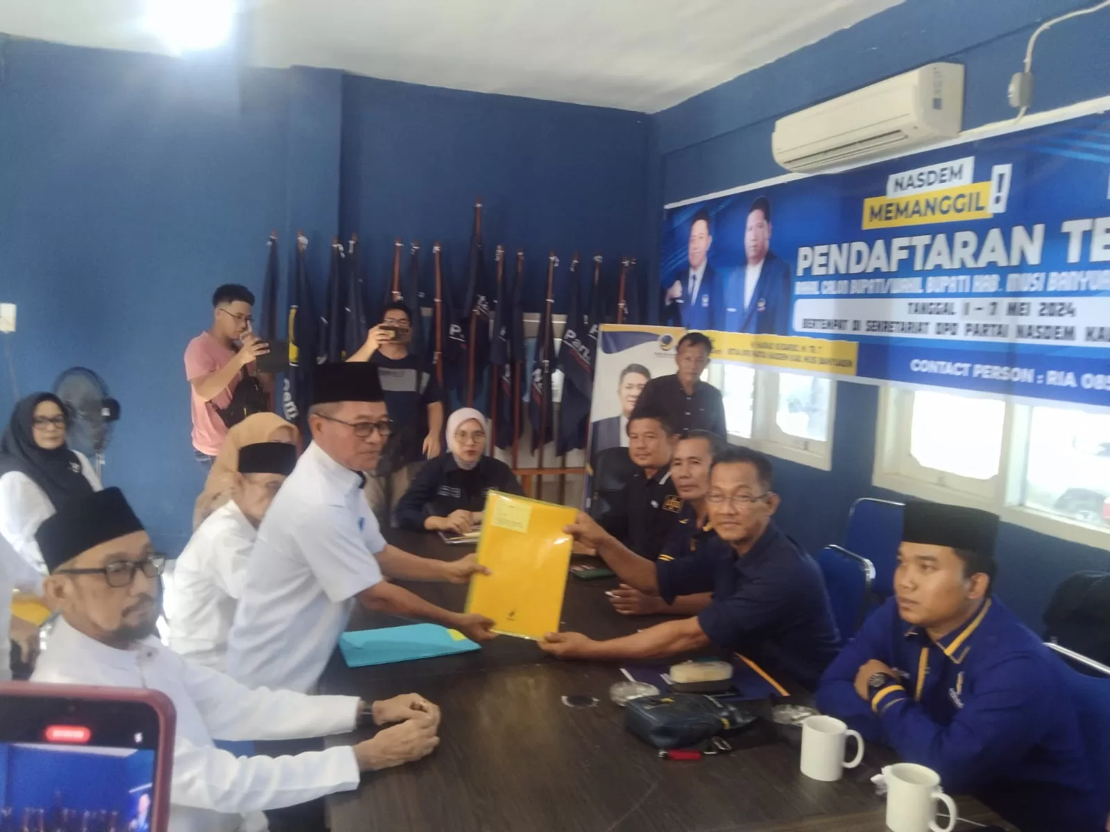 KRSUMSEL.COM, Muba – Tim Pemenangan Drs. H. Apriyadi, MSi Bakal Calon Bupati Muba mengambil formulir penjaringan Calon Bupati Muba di kantor DPC Partai Perindo Jalan Lingkar Randik Sekayu Kabupaten Musi Banyuasin, Selasa (7/5). Kompak memakai setelan hitam putih tim yang dikomandoi mantan Camat Lawang Wetan, Candra SKM, MSi ini disambut Ketua DPC Perindo Alpian SH di didampingi wakil ketua OKK Depi Irawan SE dan sejumlah jajaran pengurus DPC Perindo Muba.