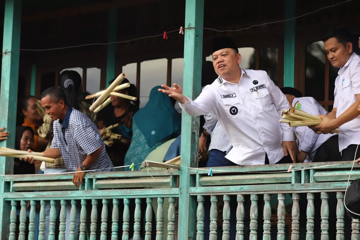 Antusias dan keseruan warga terlihat ketika Pj Bupati H Sandi Fahlepi tanpa sungkan ikut bersama warga menikmati suasana sedekah lemang dan Ziarah Makam Puyang Burung Jauh di Desa Kertayu Kecamatan Sungai Keruh.