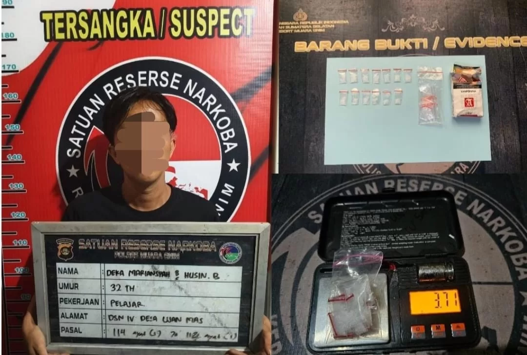 Pelaku berinisial DM (32) warga Desa Ujan Mas Baru, beserta barang buktinya kemudian dibawa ke kantor Satuan Reserse Narkoba Polres Muara Enim untuk dilakukan proses penyidikan lebih lanjut, tuturnya.
