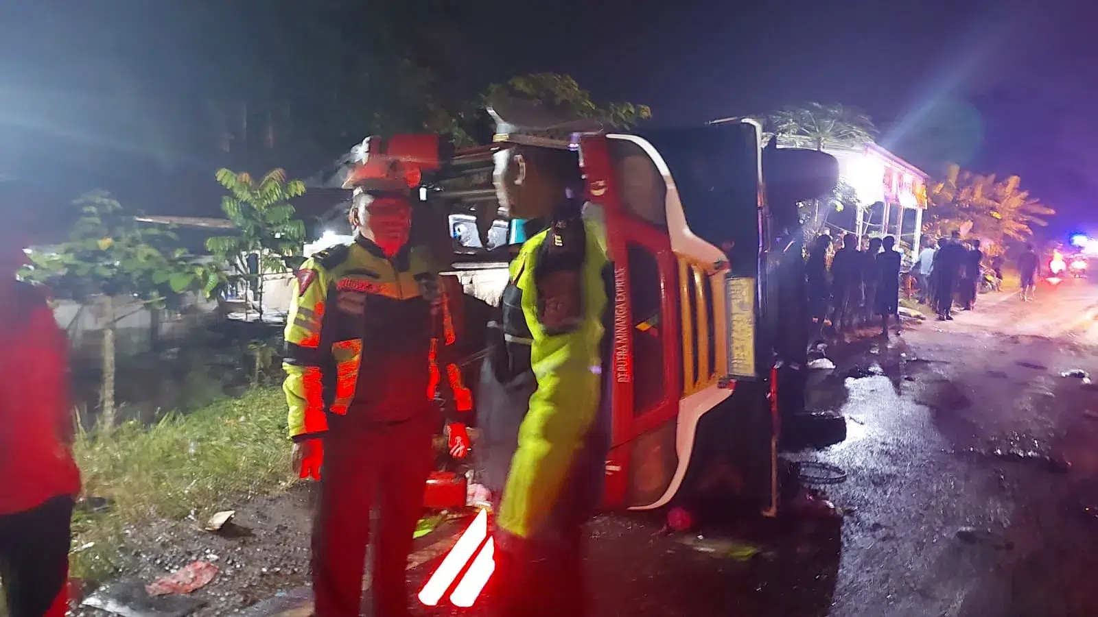 KRSUMSEL.COM, OKI – Kecelakaan lalulintas dialami Bus PO Minanga Exspres yang membawa rombongan study tour SDN 1 Harisan Jaya, Kecamatan Cempaka, Kabupaten OKU Timur, di wilayah Kabupaten Ogan Komering Ilir (OKI), Jumat (24/5) sekitar pukul 20.25 WIB.