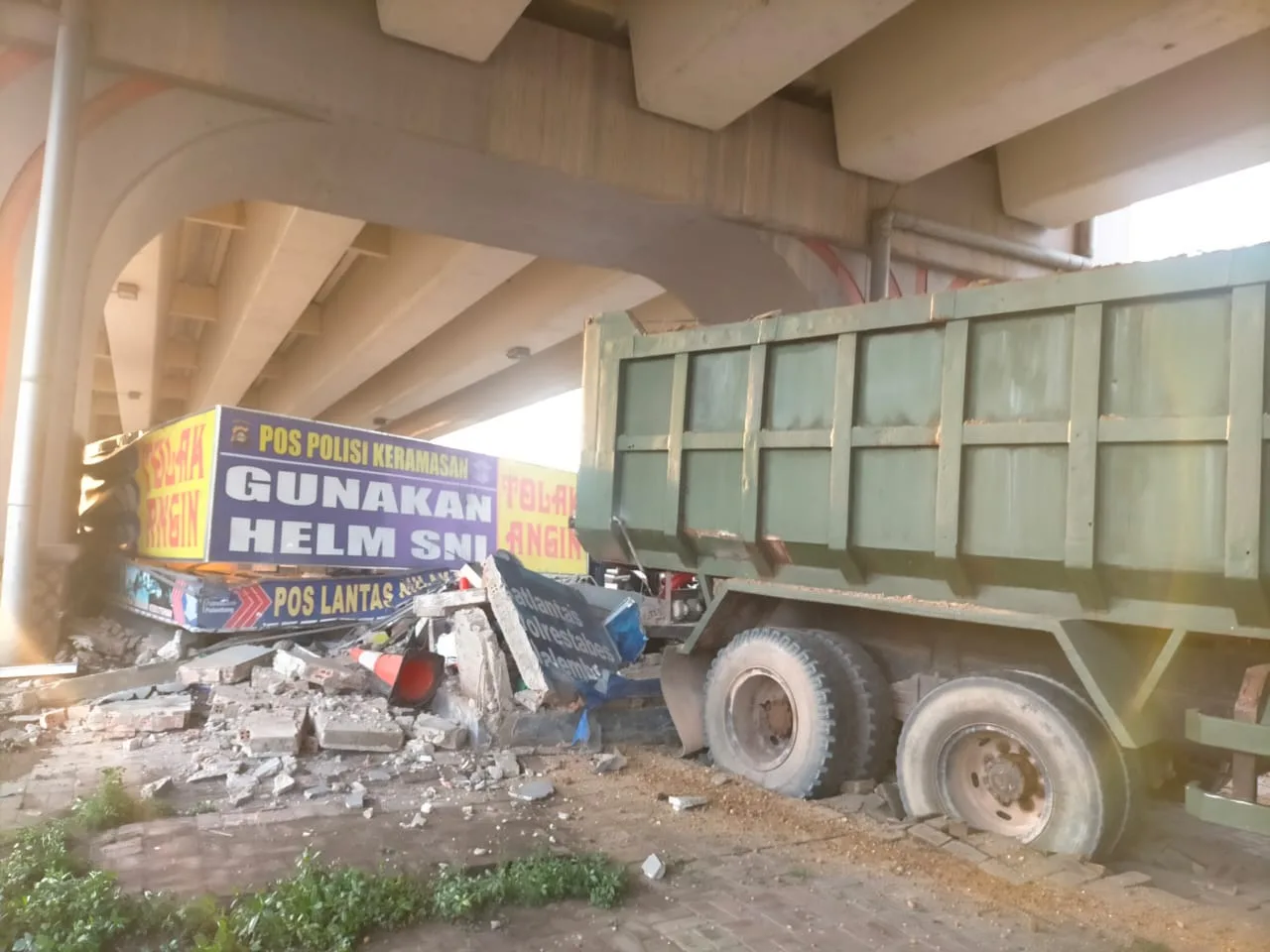 KRSUMSEL.COM, Palembang – Pasca peristiwa laka lantas yang terjadi di Jalan Sriwijaya Raya tepatnya di bawah Fly Over Nilakandi Kertapati, Palembang, seorang pengemudi R4 truck tronton bernopol Hino B-9750-OY menabrak Pos Gatur Nilakandi, kemarin. Hingga kini kasus terus berjalan dan ditangani oleh Satlantas Polrestabes.