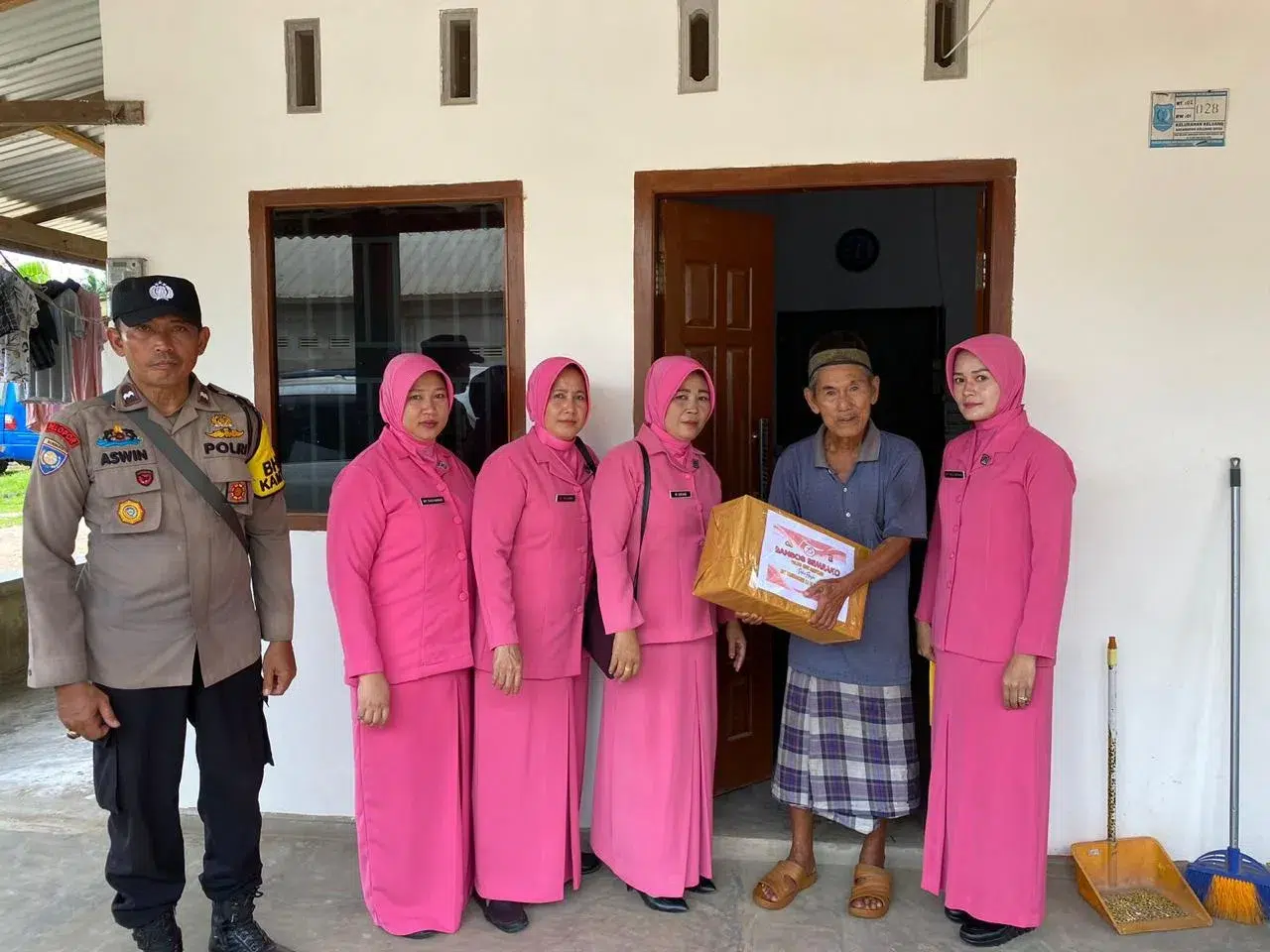 Pada pelaksanaannya pembagian sembako dilakukan dengan door to door dibantu oleh personil Polsek Keluang, tampak warga terlihat senang ketika didatangi oleh ibu-ibu berseragam pink bersama anggota Polsek Keluang sambil membawa sembako. (AS)