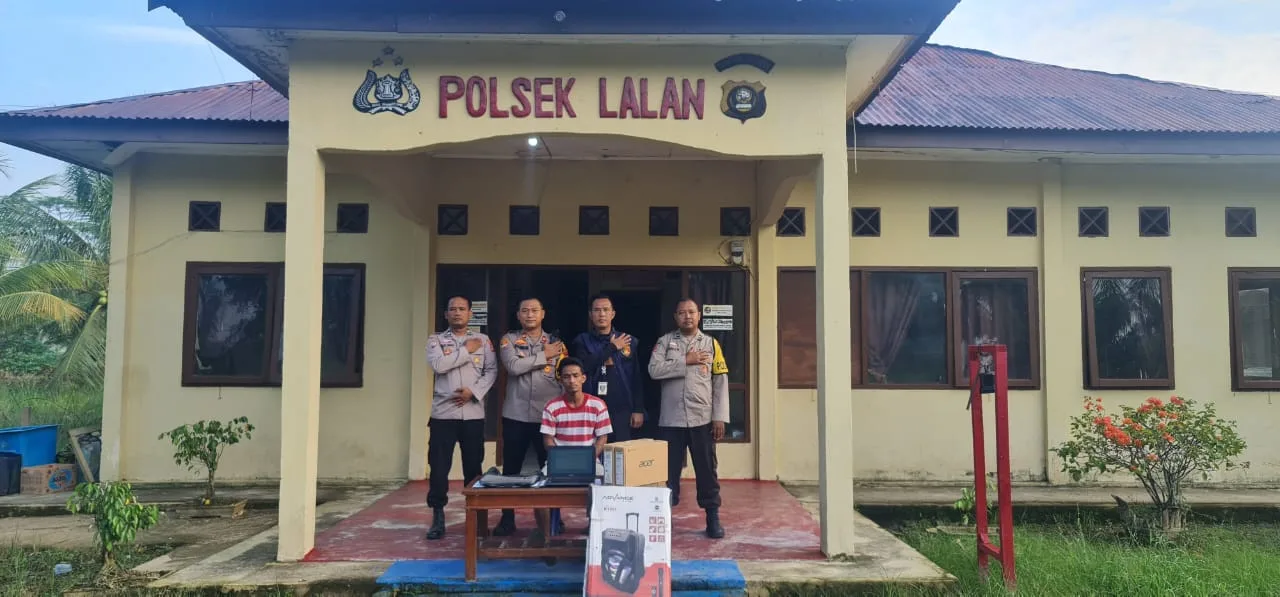 Atas laporan pencurian tersebut, pihak Polsek Lalan melakukan serangkaian penyelidikan hingga petugas mendapatkan informasi terduga pelaku pencurian hendak menjual barang curian tersebut melalui media sosial facebook.
