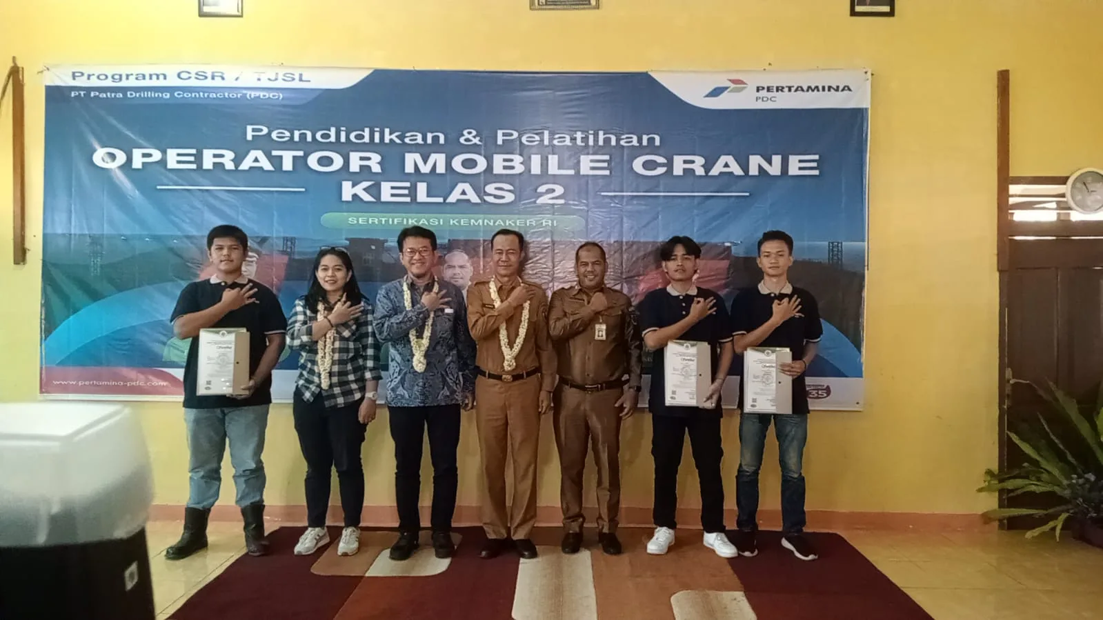 PRABUMULIH, KRSUMSEL.COM – Selama 5 hari, PT Patra Drilling Contractor(PDC) telah sukses bersama Disnaker Prabumulih melaksanakan Pendidikan dan Pelatihan (Diklat) Operator Mobile Crane Kelas 2 Sertifikasi Kemanker RI.