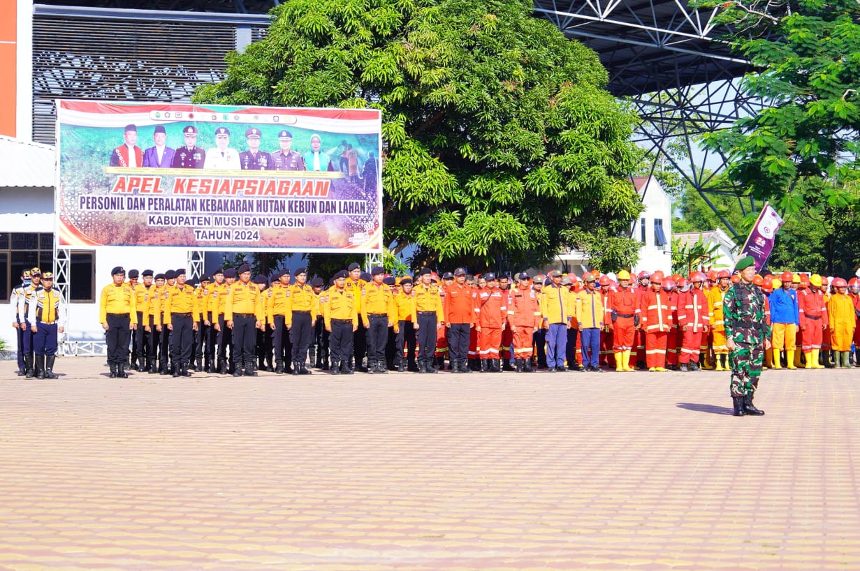 KRSUMSEL.COM, Muba – Perkuat sinergi dan koordinasi dalam pencegahan dan penanggulangan Karhutbunlah, Pemkab Musi Banyuasin dibawah komando Pj Bupati Muba H Sandi Fahlepi menggelar apel Kesiapsiagaan Personil dan peralatan di Stabel Berkuda Sekayu, Rabu (24/7).
