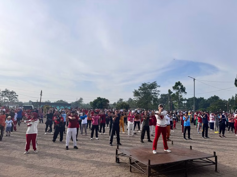 BANYUASIN, KRSumsel.com — Minggu (11/08) di Taman Kota Pangkalan Balai, Pemerintah Kabupaten Banyuasin melaksanakan senam pagi bersama.