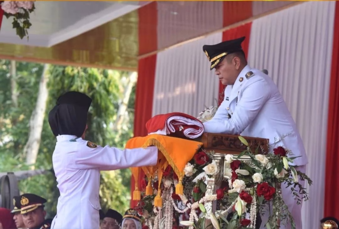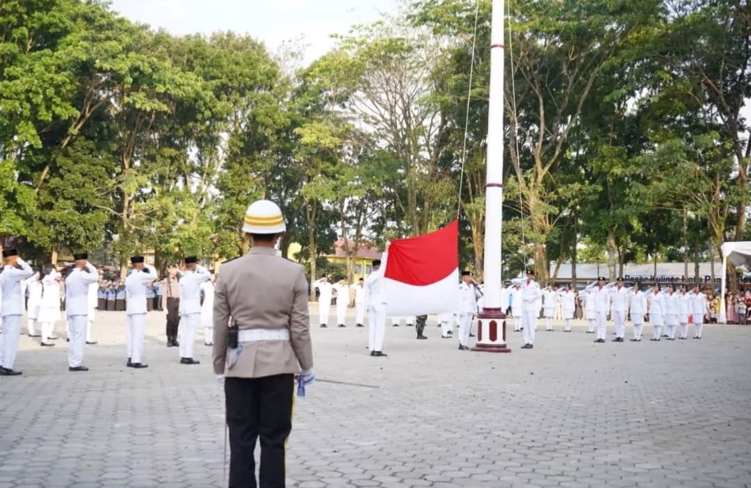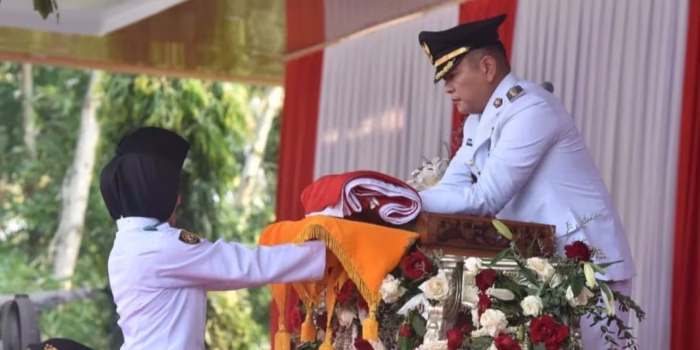 Upacara dipimpin Kapten Infantri Arif Nur Rochman, sementara pembacaan teks Proklamasi dibacakan oleh Ketua DPRD Jenny Shandiyah dan seluruh undangan yang hadir mengikuti dengan khidmat.