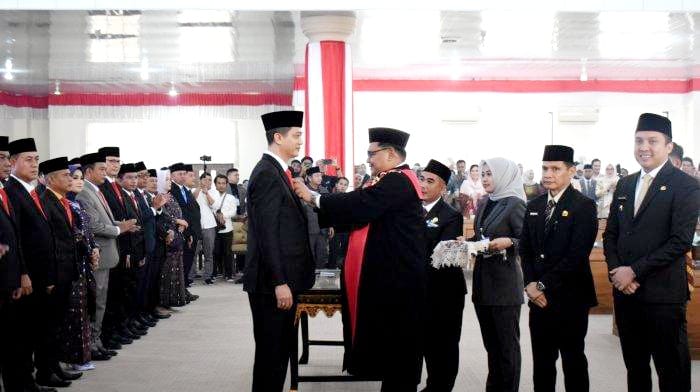 Indralaya, KRSUMSEL.COM – Sebanyak 40 orang anggota DPRD Ogan Ilir resmi dilantik hari ini, tampak hadir, Ketua DPRD yang baru H Edwih Cahya Putra, Bupati Oi Panca Wijaya akbar, Kapolres Oi, Kejari, Sekda, kepala OPD, camat seKabupaten Oi dan ratusan undangan dan keluarga dari 40 orang anggota DPRD OI yang dilantik.