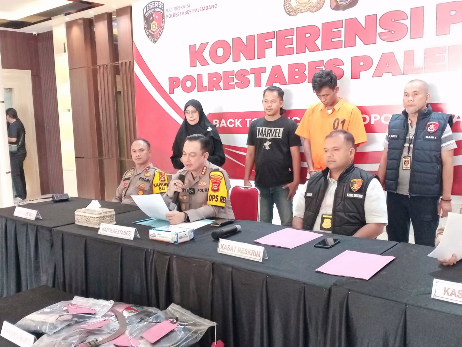 ” Jadi bener pelaku ini sudah lama kita incar dan menjadi TO kami. Saat keberadanya berhasil kita endus, saat itu pula lah pelaku langsung kita tangkap,” Ungkap Kapolrestabes Palembang Kombes pol Harryo Sugihartono didampingi Kasat Reskrim AKBP Yunar Hotma Parulian Sirait serta Kapolsek SU II, Kompol Andri, saat menggelar perkara pekaku.