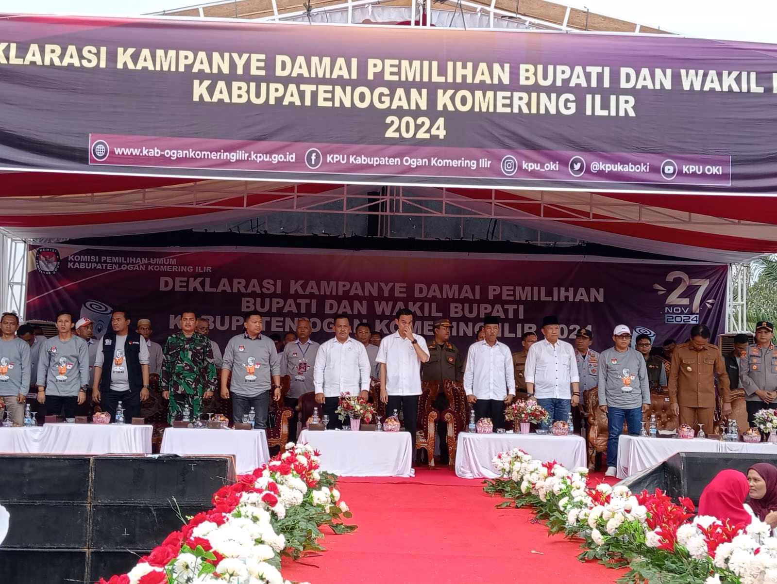OKI, KRSUMSEL.COM – Komisi Pemilihan Umum (KPU) Kabupaten Ogan Komering Ilir (OKI) menggelar deklarasi kampanye damai bersama Dua pasangan calon (paslon) demi menciptakan situasi damai dalam Pilkada OKI 2024.