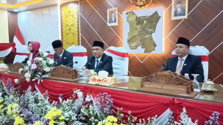 PRABUMULIH, KRSUMSEL.COM – DPRD Prabumulih mengelar sumpah dan janji Pimpinan DPRD defenitif di Ruang Sidang Paripurna, Senin, 14 Oktober 2024.