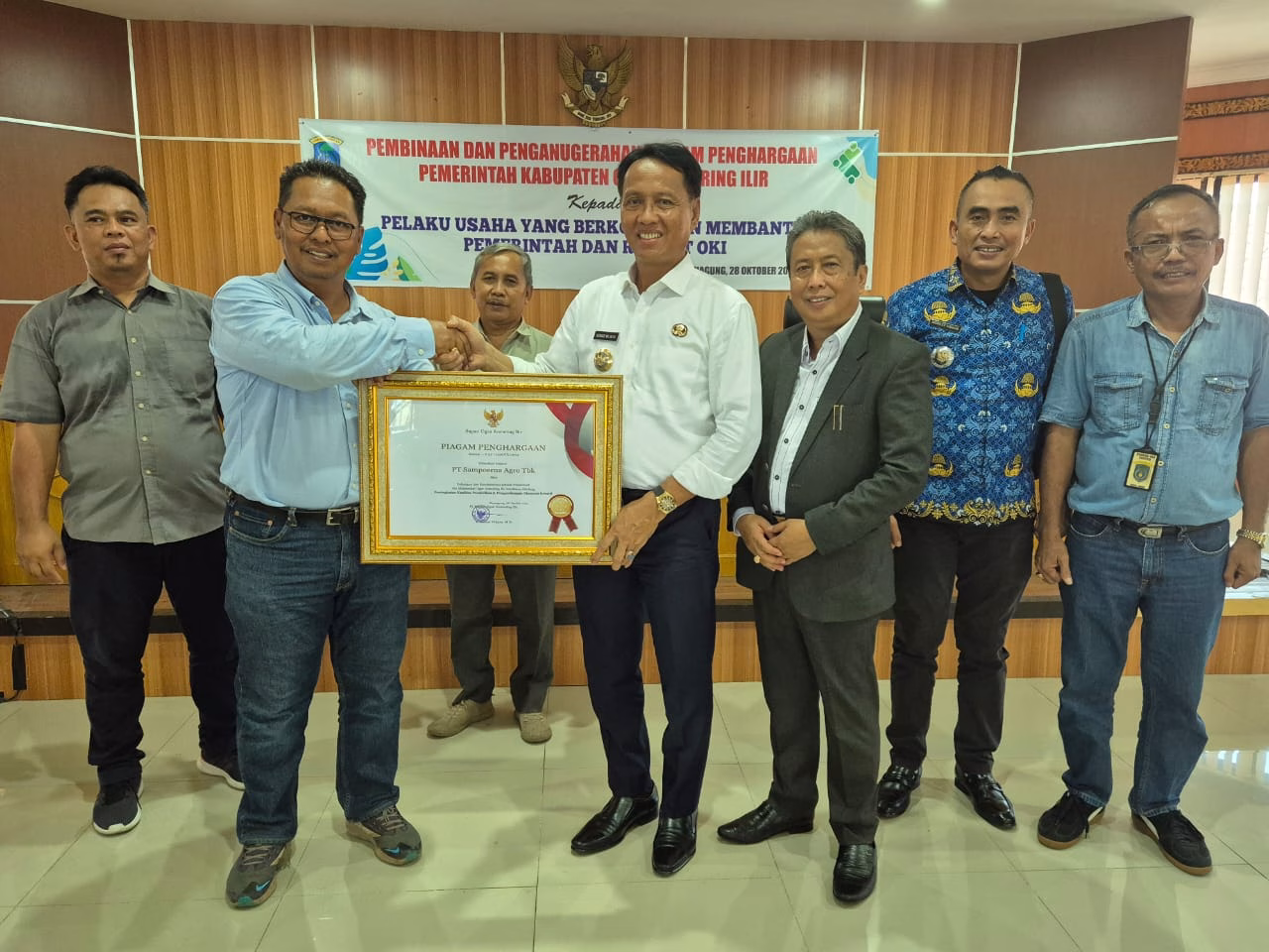OKI, KRSUMSEL.COM – Karena banyak memberikan program bermanfaat untuk kemajuan masyarakat sekitar, Corporate Social Responsibility (CSR) PT Sampoerna Agro Tbk Region Sumatera menerima Piagam Penghargaan CSR Awards 2024, dari Pemkab OKI.